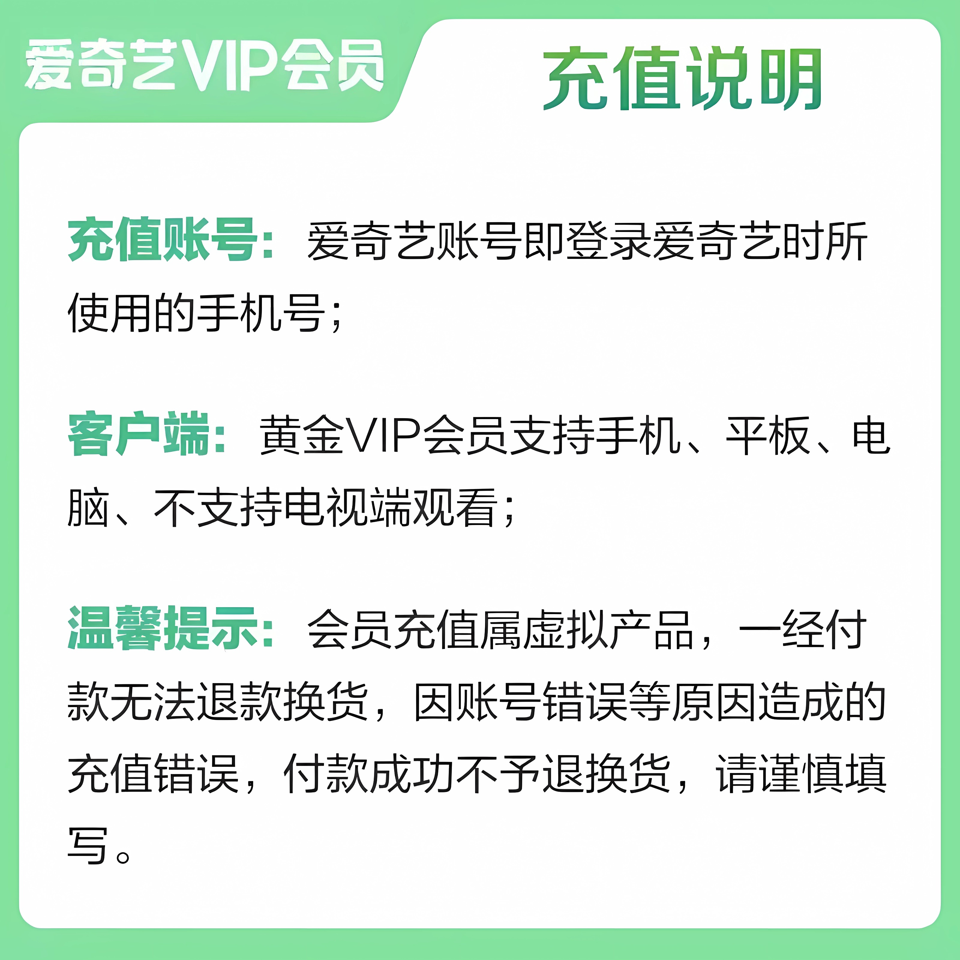【月卡直充】爱奇艺会员vip黄金月卡30天一个月爱 艺 奇视频会员