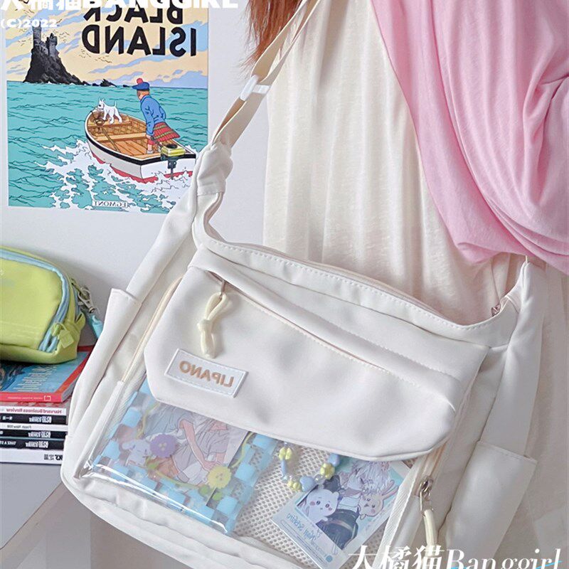 日系学院少女吧唧透明10cm娃包痛包大容量百搭学生装书单肩斜挎包