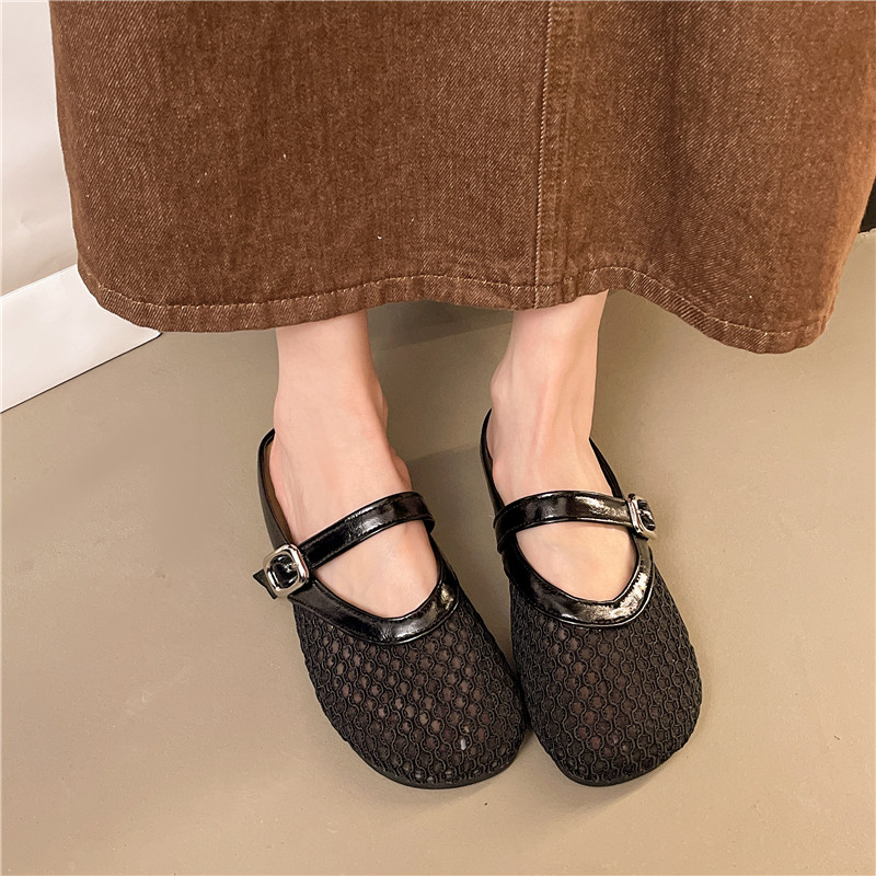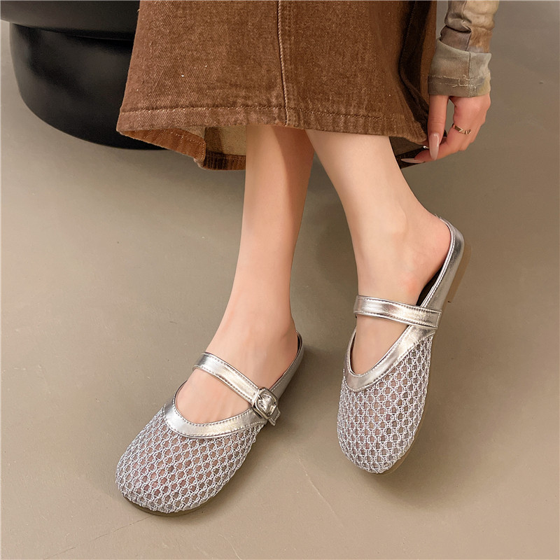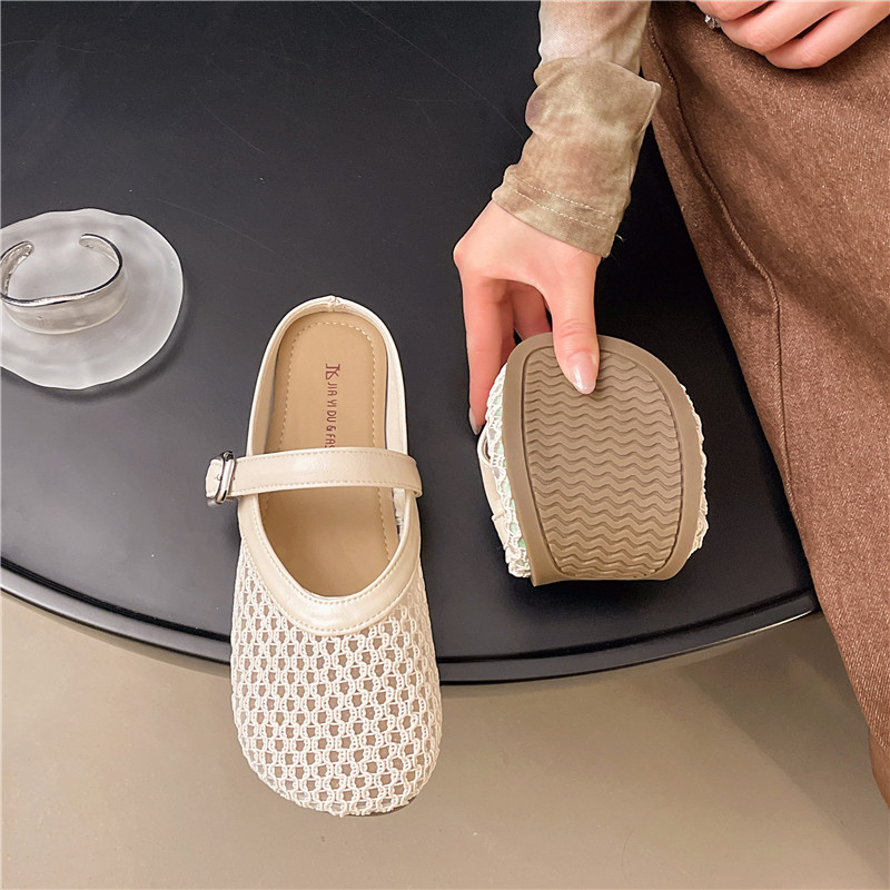 大码女鞋41到43镂空透气编织包头半拖鞋夏季网面玛丽珍凉拖鞋软底