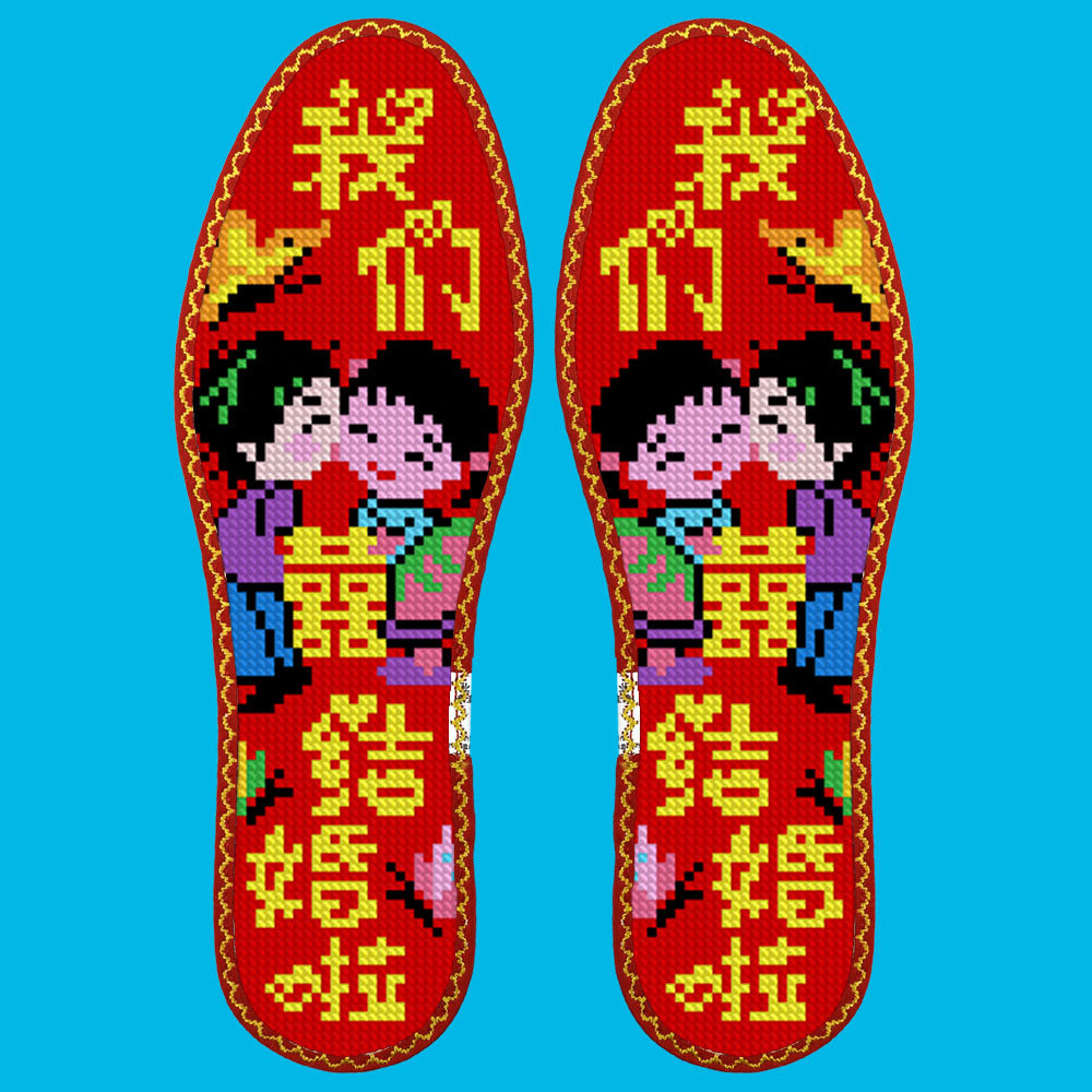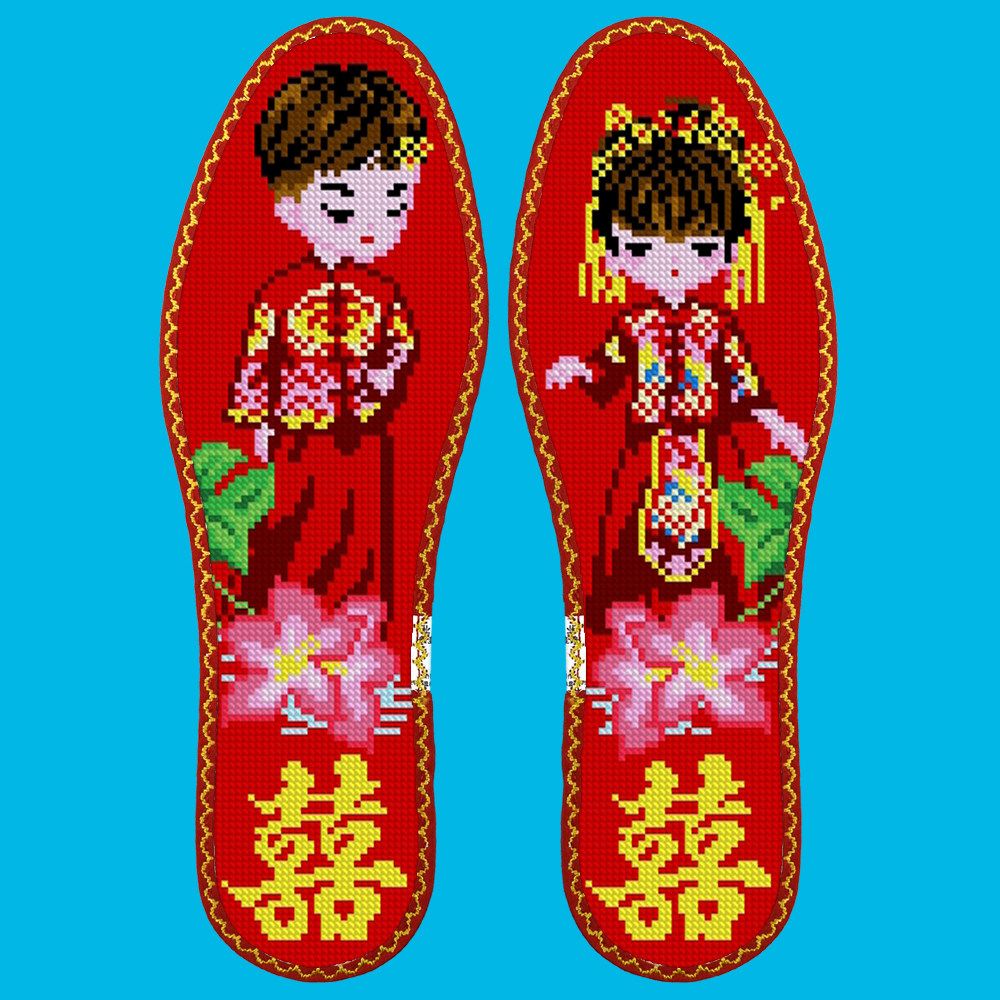 鸿运玫瑰中小格十字绣鞋垫2026年新款七层全棉布结婚自己绣半成品