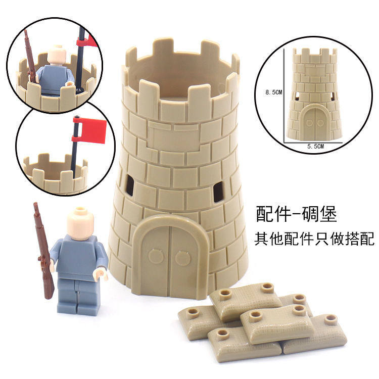 军事积木人仔配件碉堡场景建筑小颗粒儿童玩具拼装兼容乐高零件