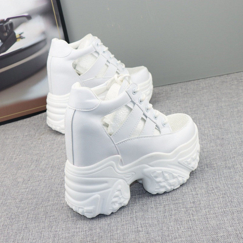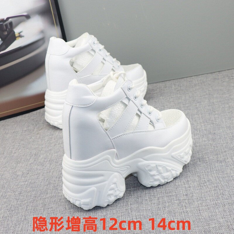 14公分内增高老爹鞋女夏季新款镂空透气12cm厚底小白鞋休闲女凉鞋