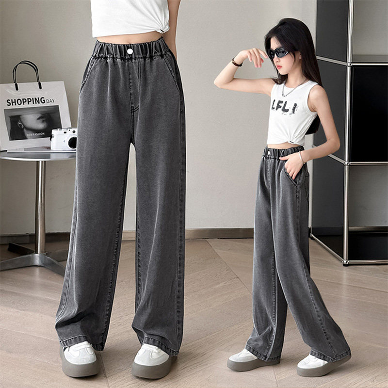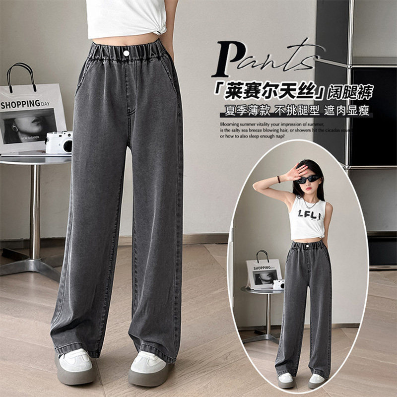 女童春夏裤子2025新款中大童夏季薄款天丝牛仔裤中学生直筒阔腿裤