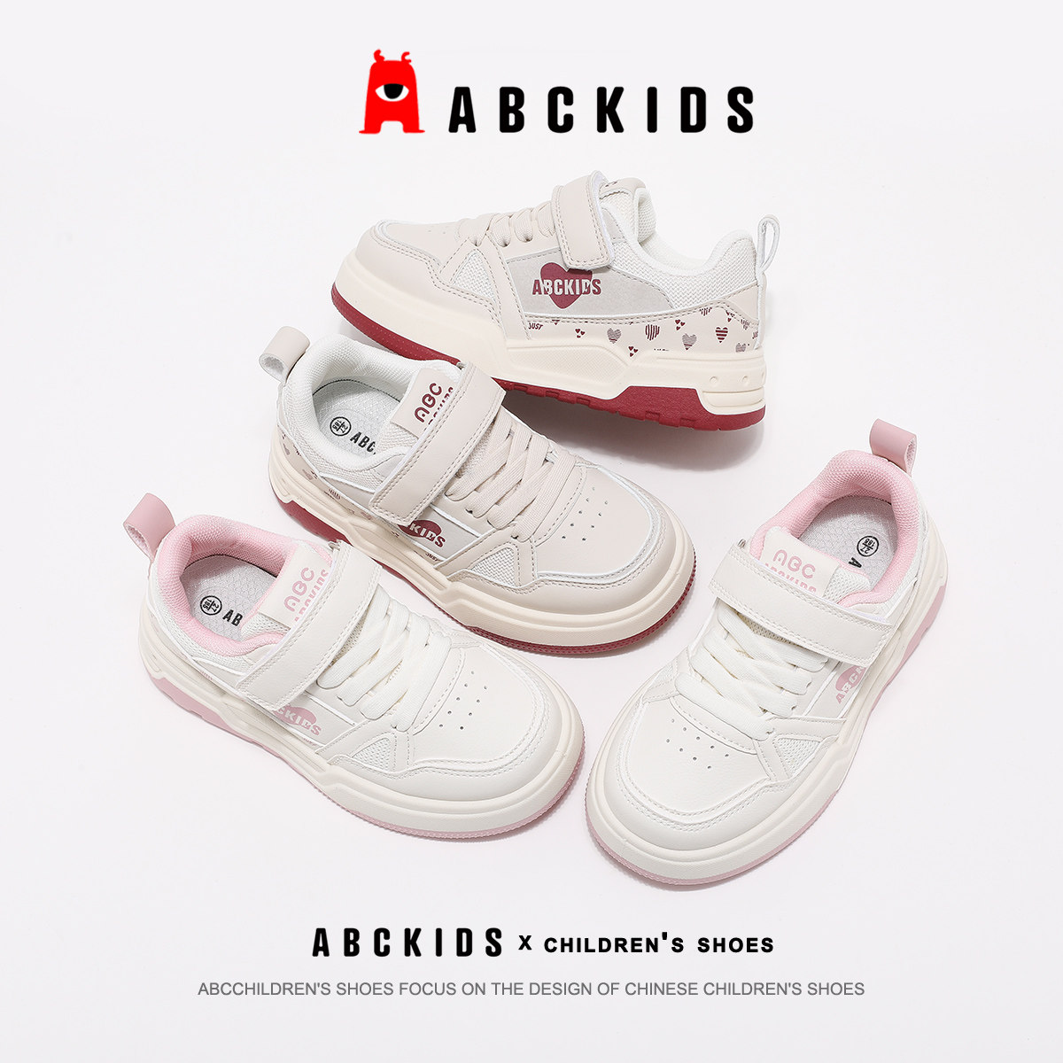 ABCkids童鞋儿童低帮百搭小白鞋女孩春季魔术贴女童鞋子运动板鞋