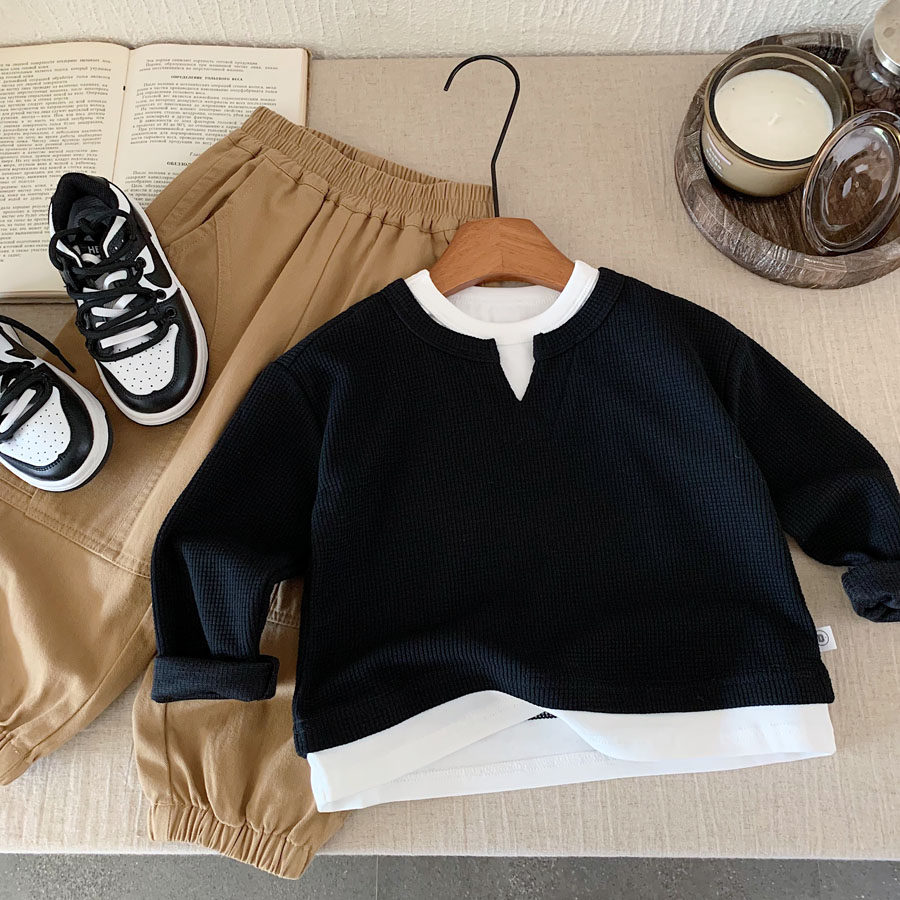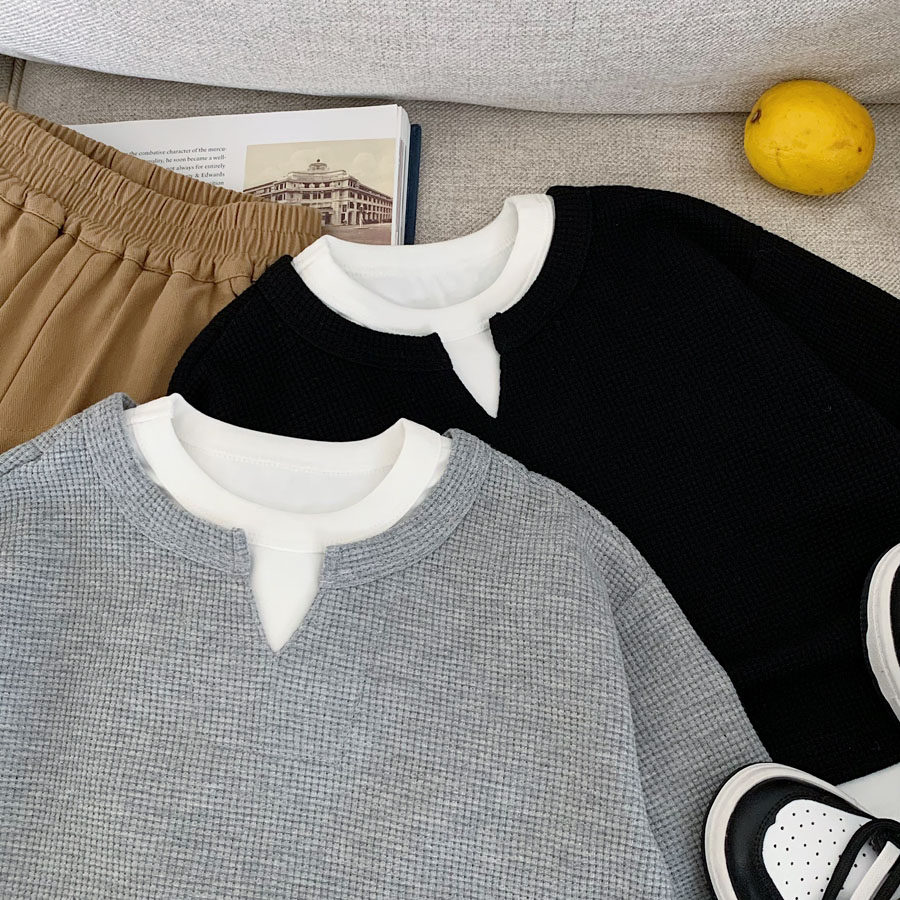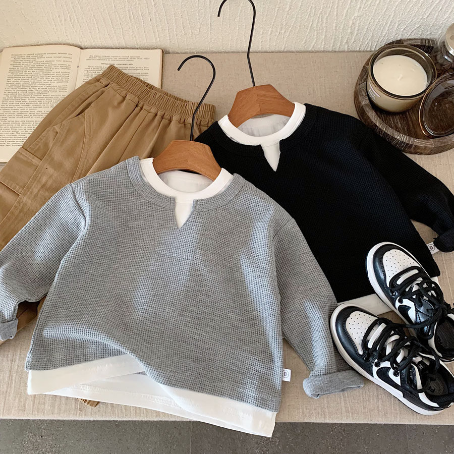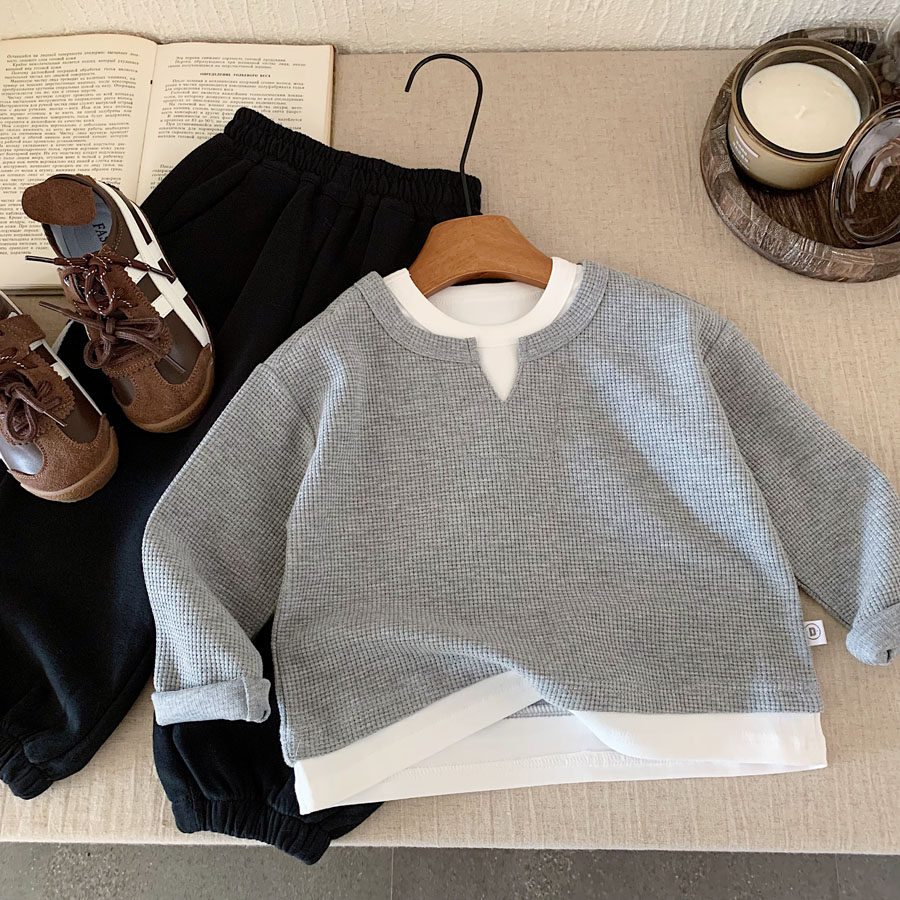 儿童华夫格卫衣2026春秋新款男女童华夫格宝宝套头纯棉卫衣洋气帅