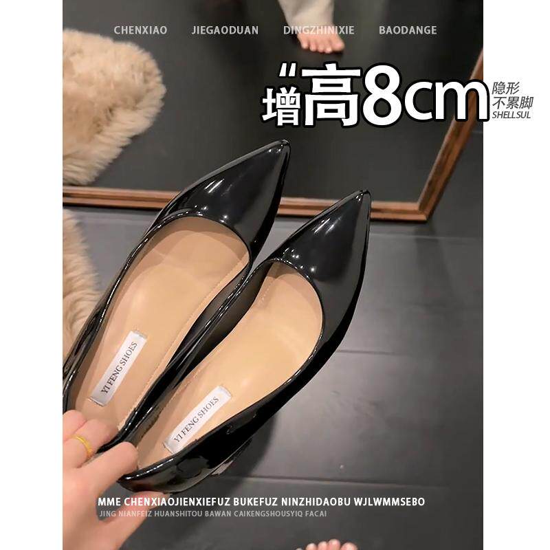 不累脚!隐形内增高8CM小个子高跟鞋2026春夏季尖头浅口单鞋女