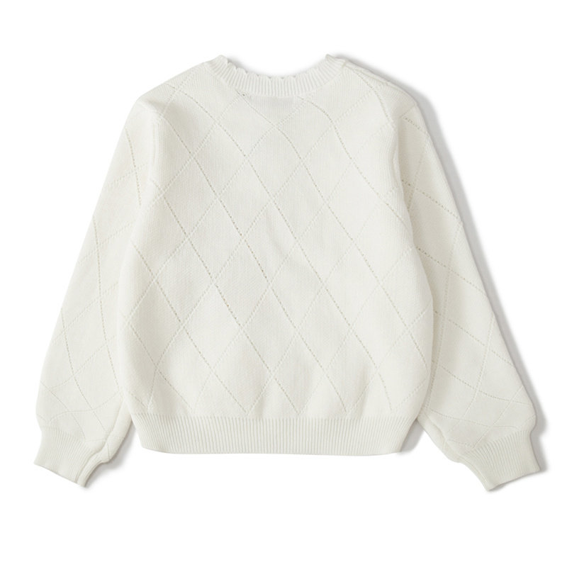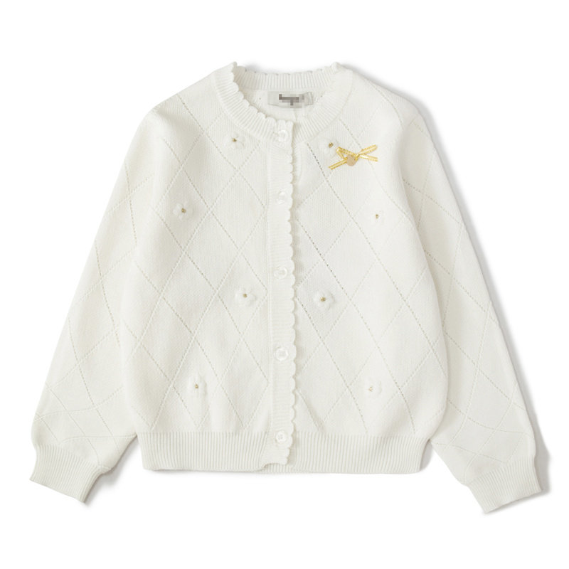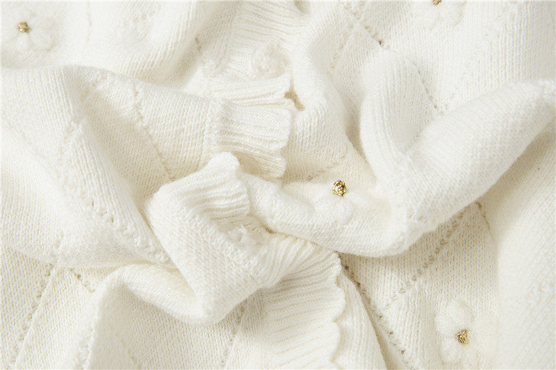 春秋新款女童白色薄款毛衣针织开衫宝宝简约清新纯色小熊镂空上衣