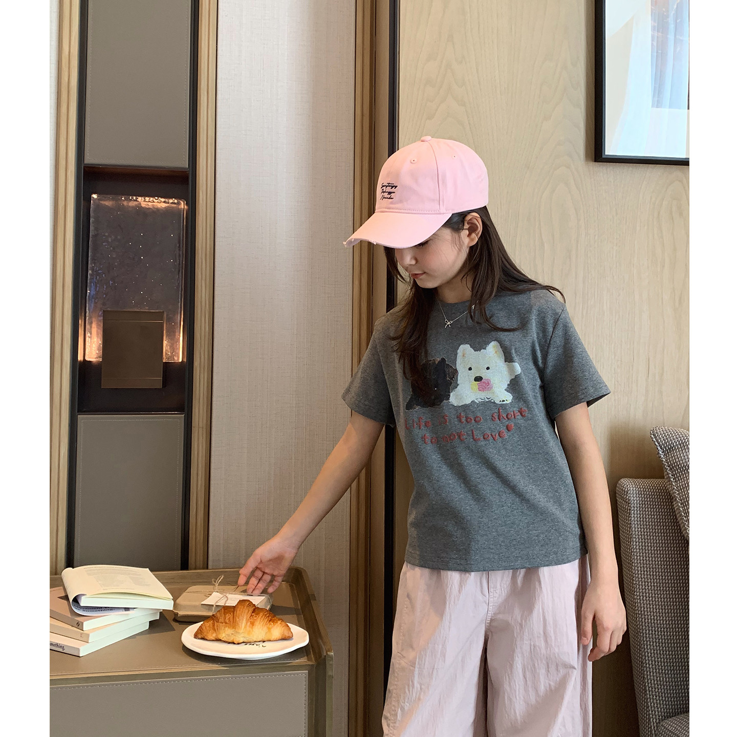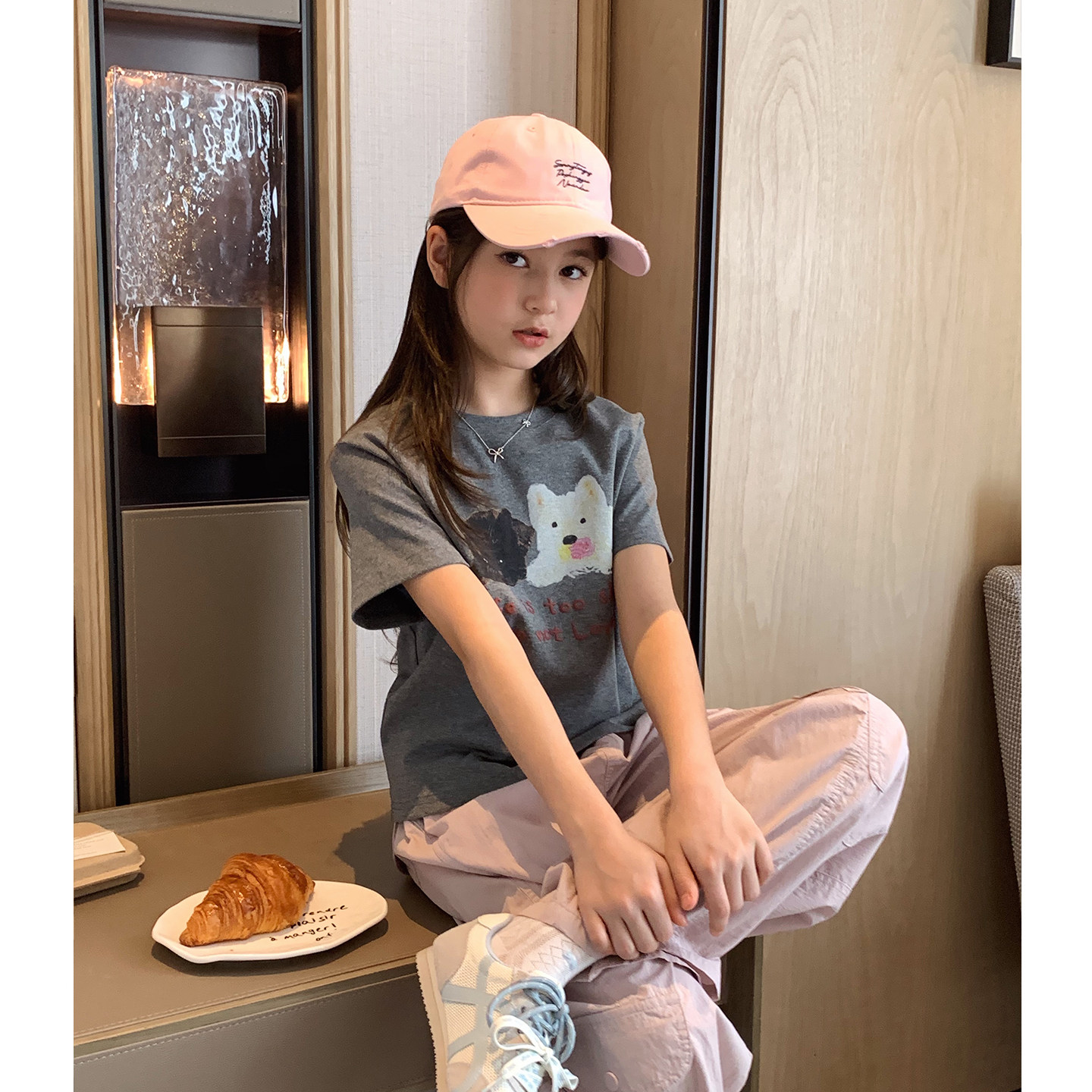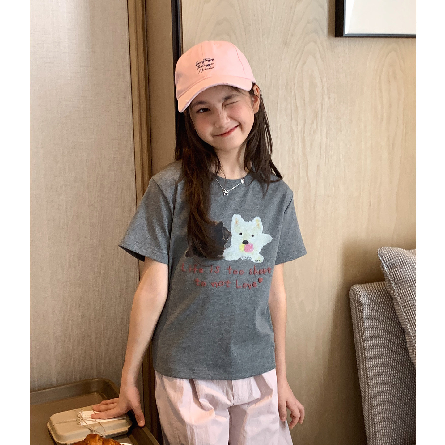 女大童卡通小狗短袖2026夏装新款青少年韩版修身小版T学生短款T恤