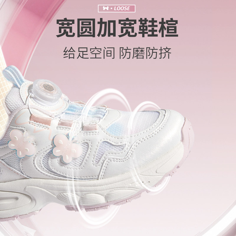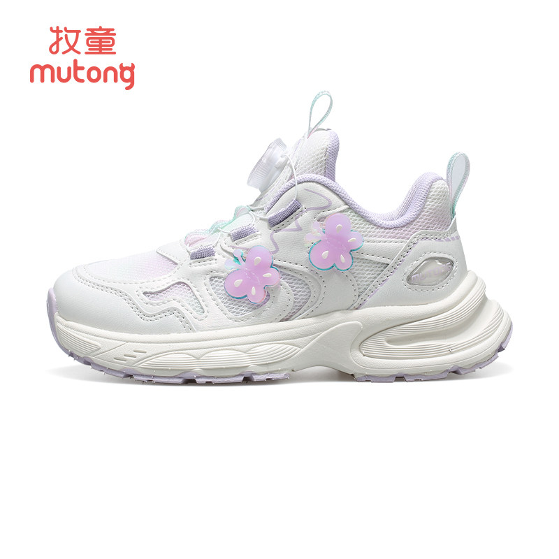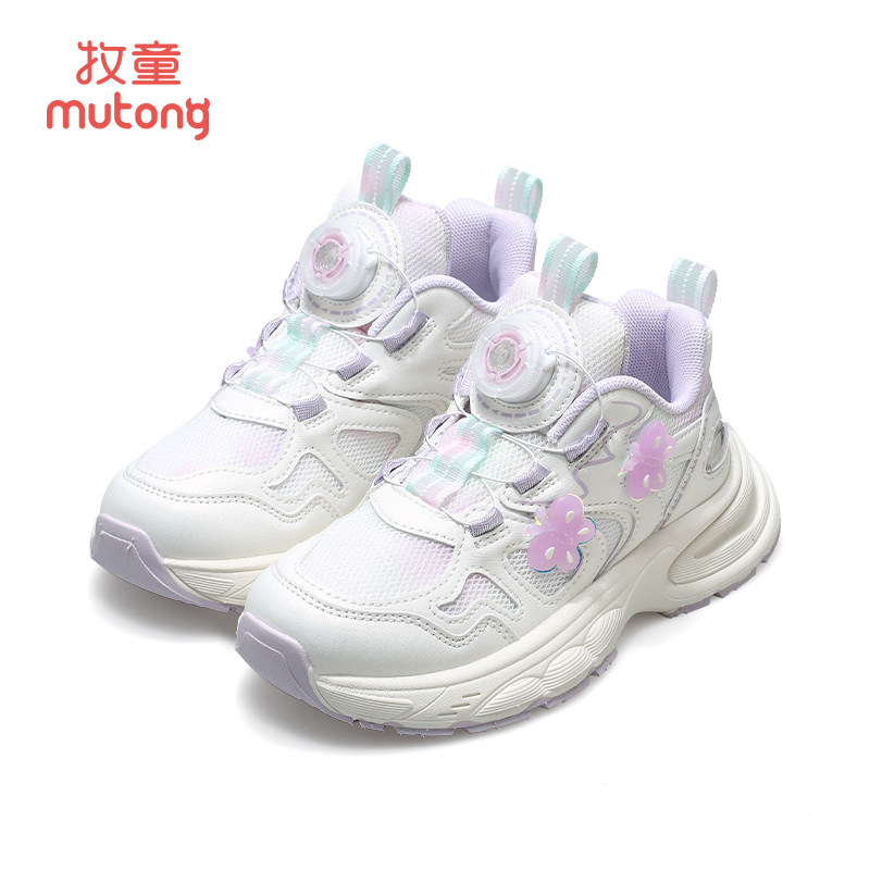 牧童童鞋女童运动鞋2025春秋新款透气网面旋转纽扣跑步鞋女孩休闲