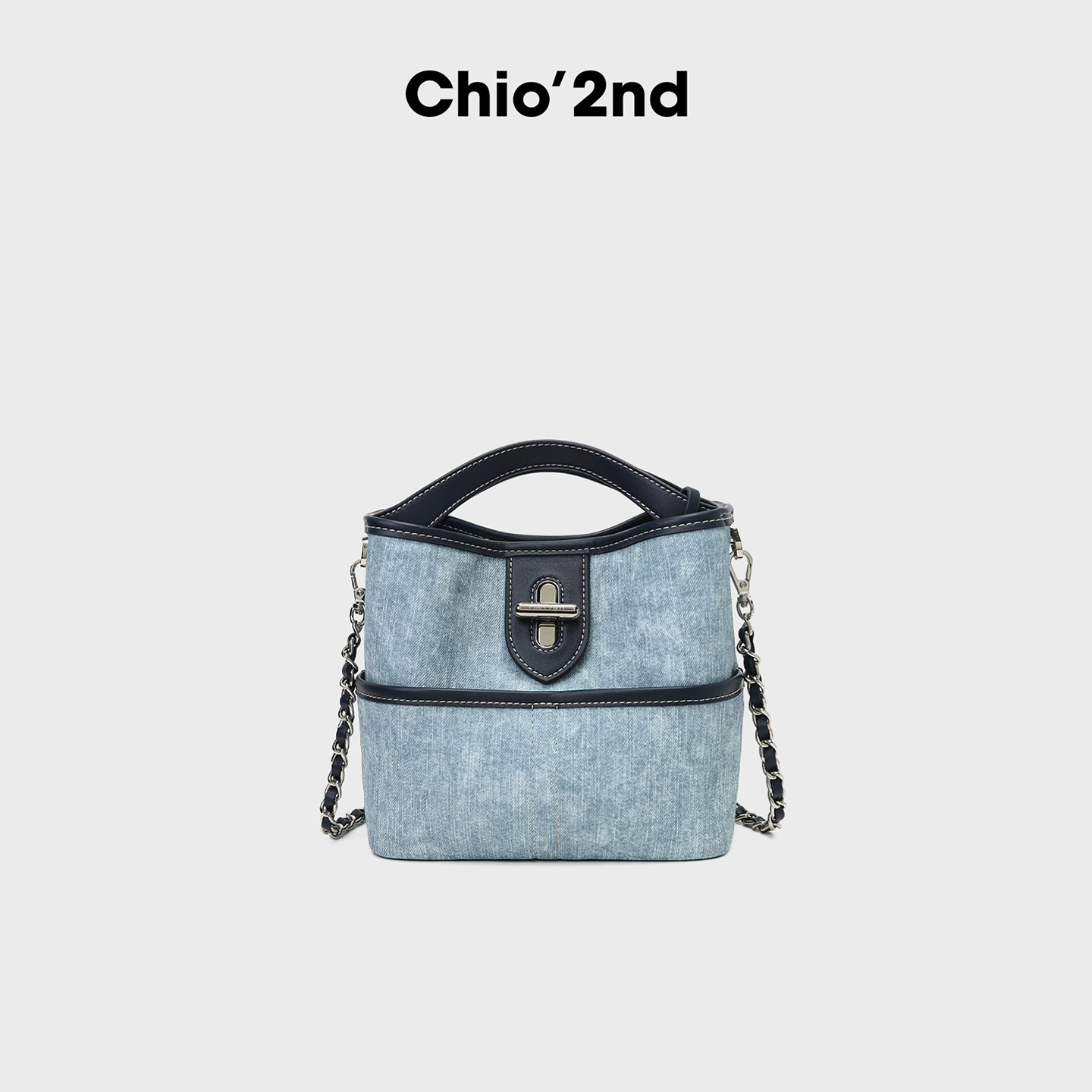 南风Chio2nd 蓝调时分水桶包包女款夏天做旧牛仔手提包单肩斜挎包