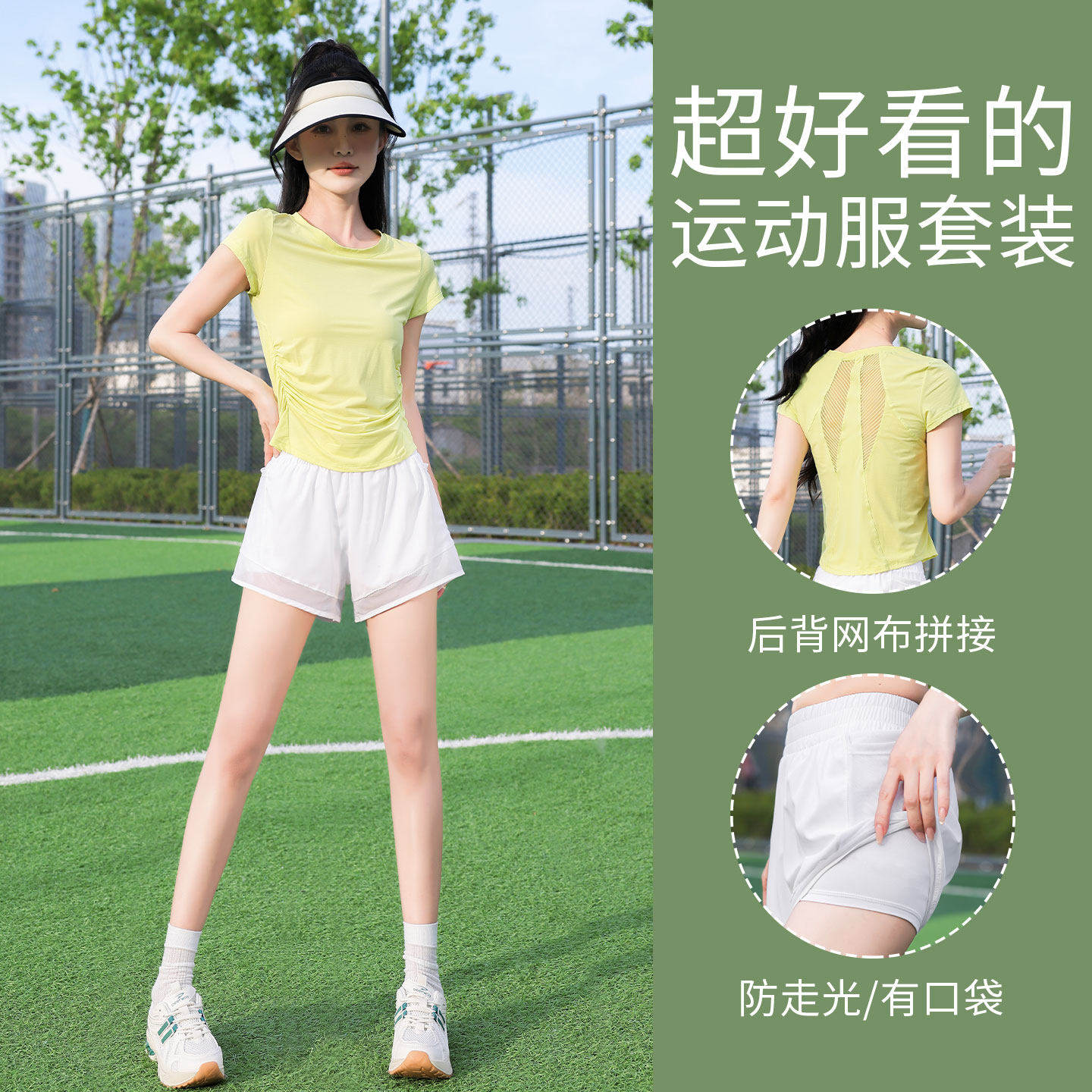 跑步运动套装女夏薄款2026新款瑜伽罩衫健身房训练上衣短裤晨跑服