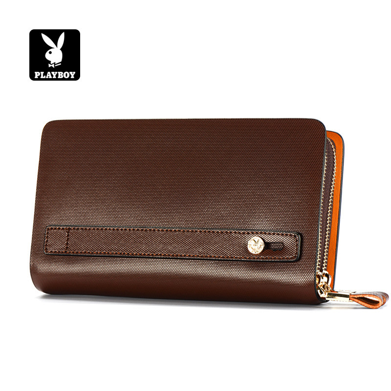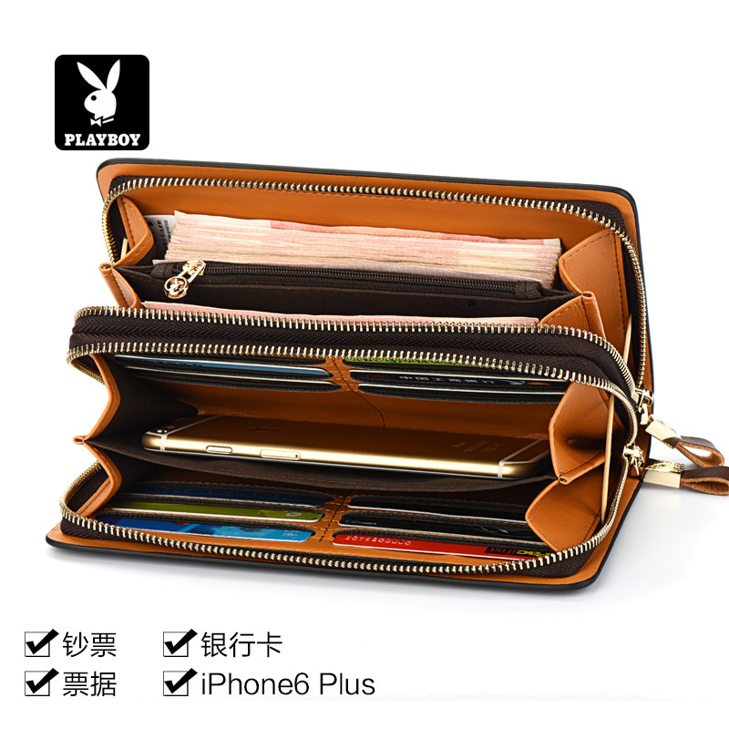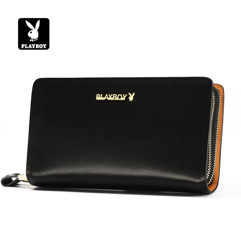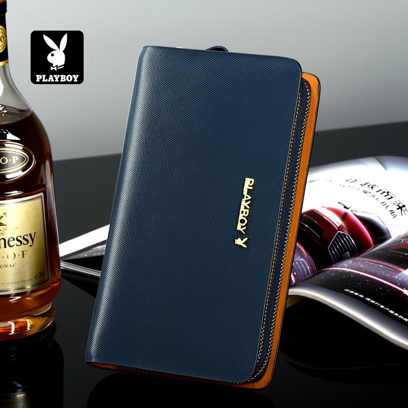 花花公子真皮钱包男士长款拉链手包大容量商务牛皮多卡位手拿包