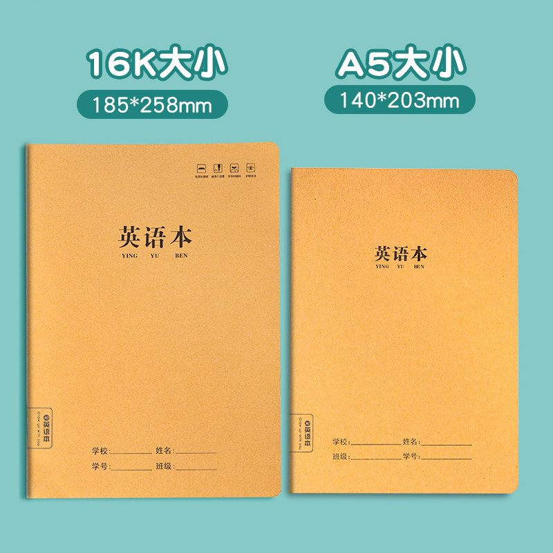 16K牛皮纸英语本初中生专用高颜值a5英语作业本子加厚批发小学生一二三年级四线三格高中生专用b5大本子22k
