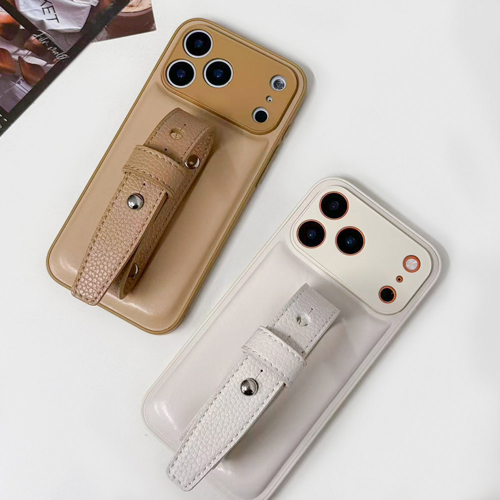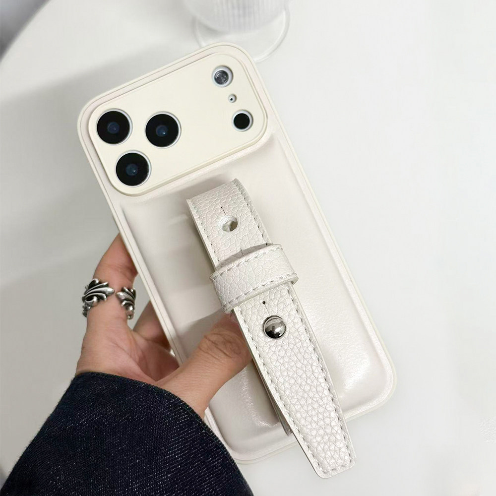 泡芙云朵软皮质三色极简豆豆钉系列适用苹果17promax手机壳腕带新款iphone16/15系列手机保护套小众ins高级感