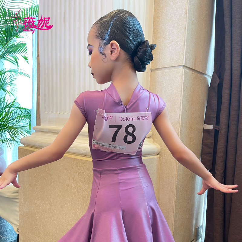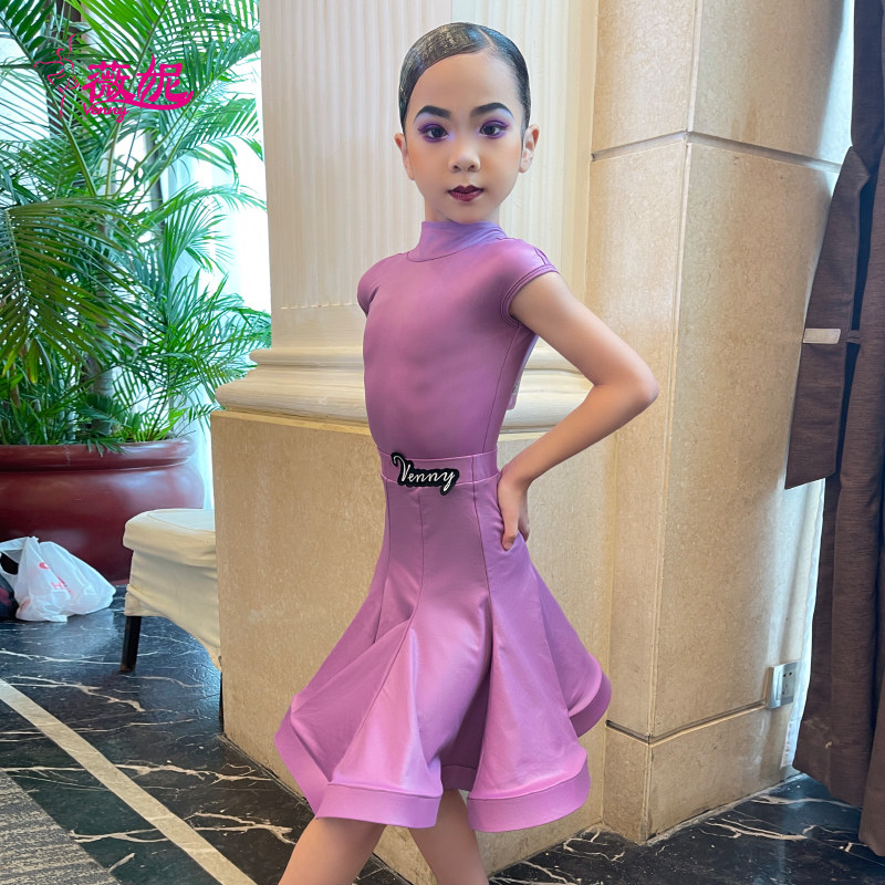 薇妮拉丁舞服专业比赛规定服考级服女童夏季舞蹈裙少儿短袖演出服