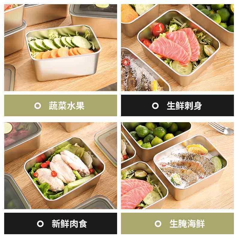 不锈钢小餐盒带盖备菜盒味盒冰箱收纳保鲜盒方形配黑色密封透明盖
