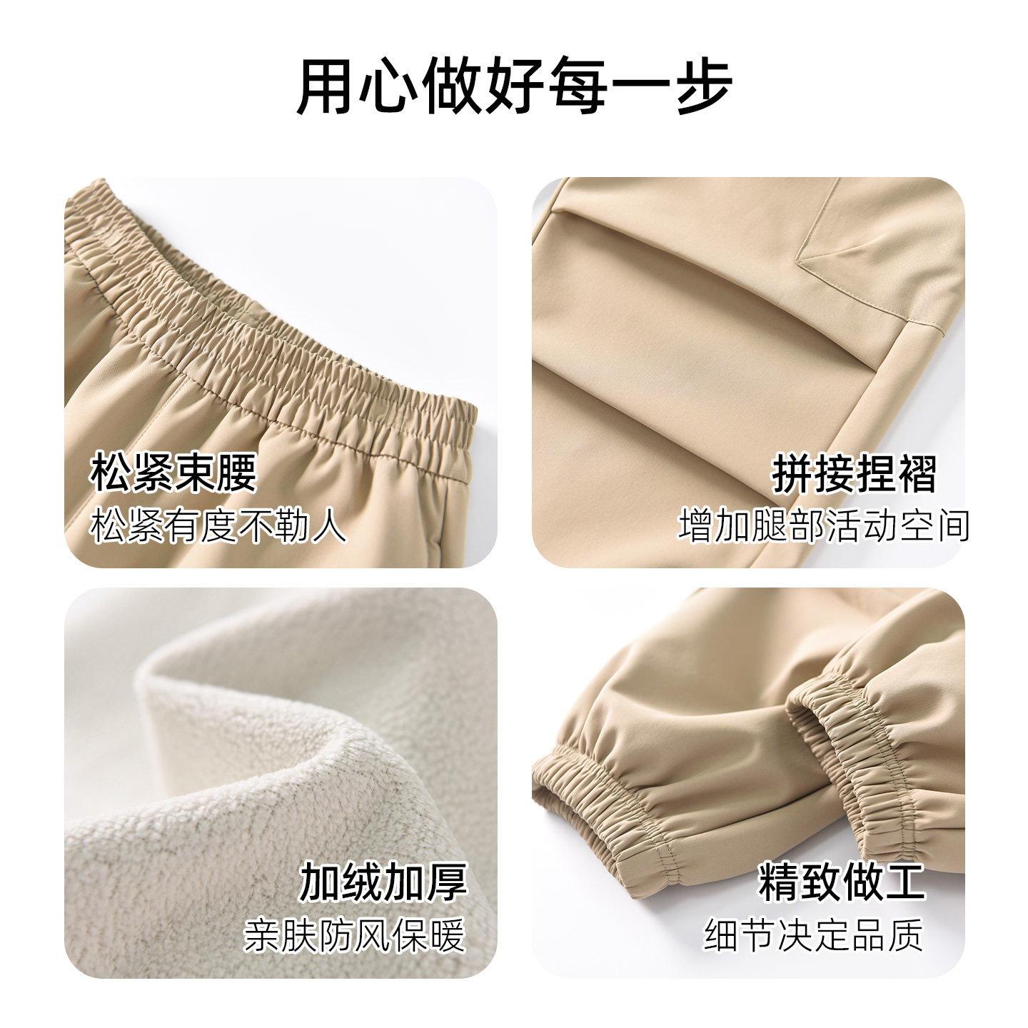 男童加绒工装裤秋冬儿童加厚保暖裤子2025新款青少年防水伞兵裤