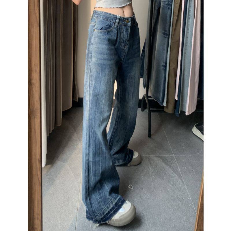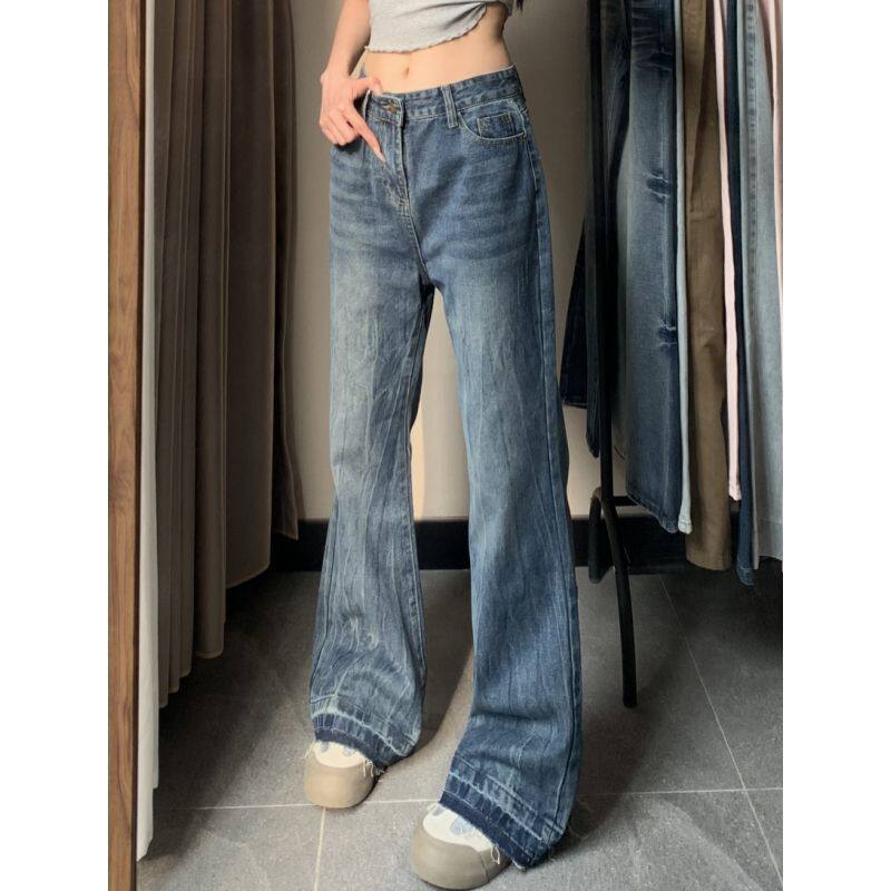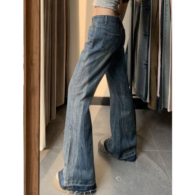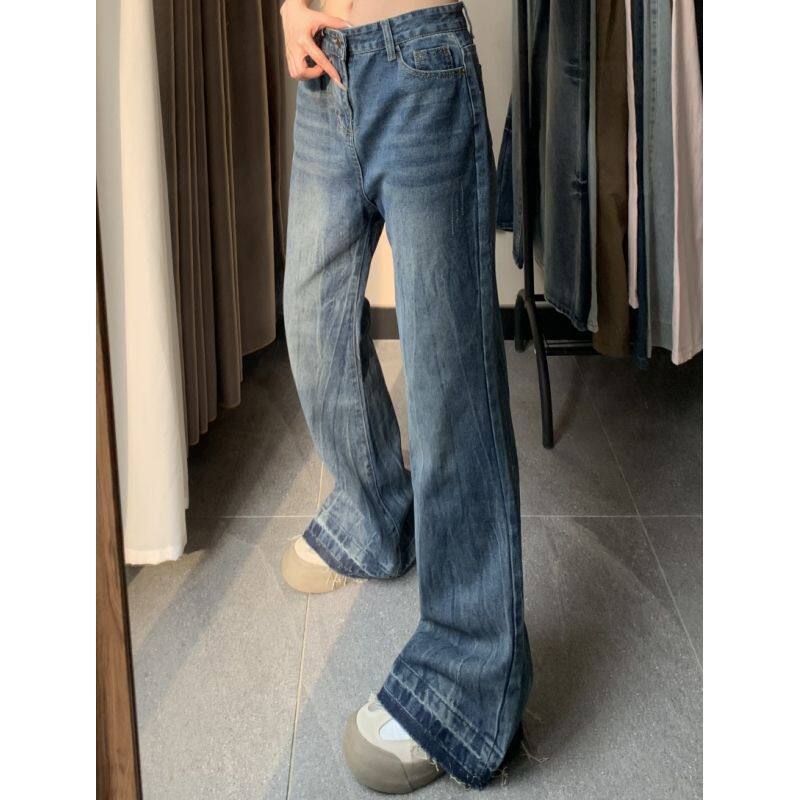小个子一米五休闲日常风喇叭微喇牛仔裤女款高腰宽松马蹄拖地裤子