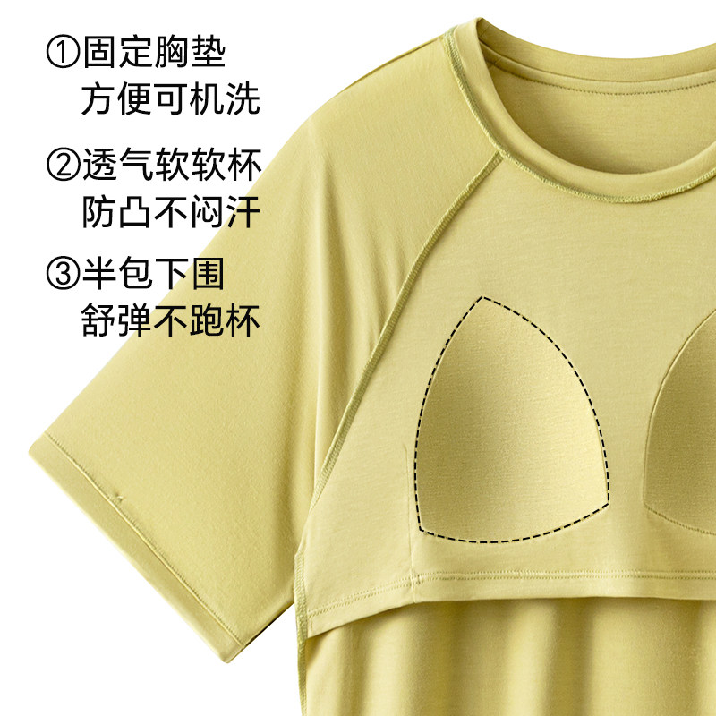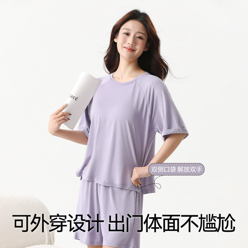 睡衣女款夏季带胸垫短袖短裤大码冰丝夏天家居服可外穿莫代尔上衣