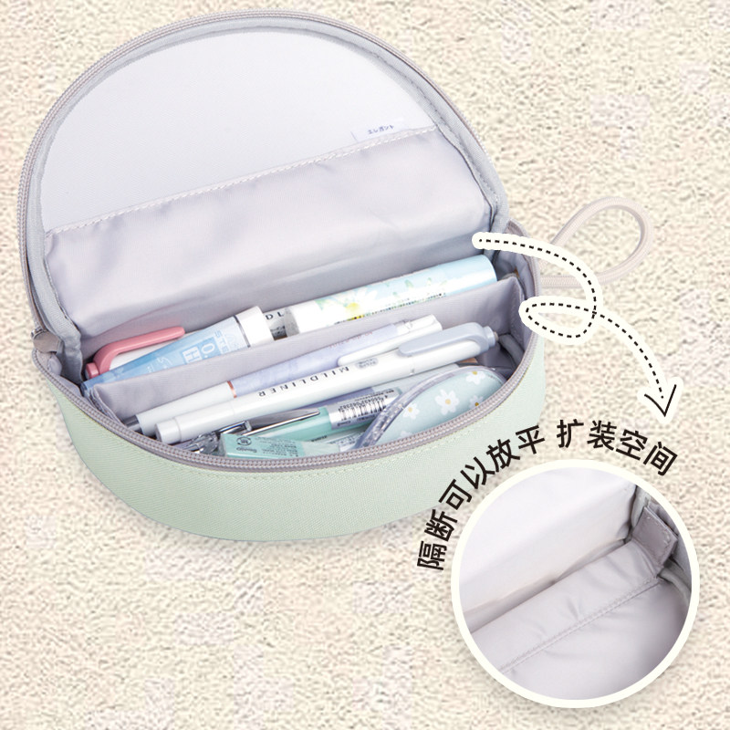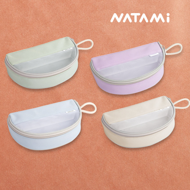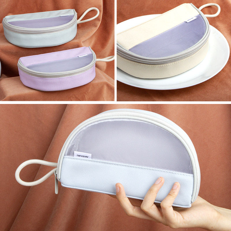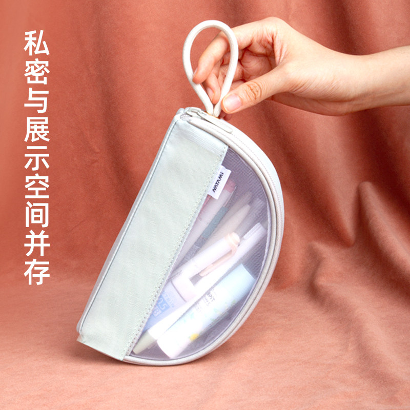 NATAMI奈多美大开口180度大容量奶油色透明网纱学生文具笔袋半圆笔盒化妆包简约莫兰迪配色盐系高颜值ins风