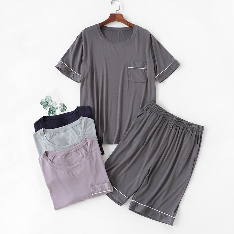 莫代尔睡衣男款夏季短袖短裤薄款日系简约家居服套装运动可外穿