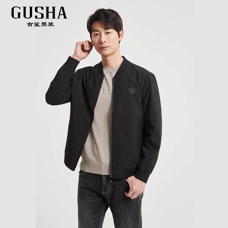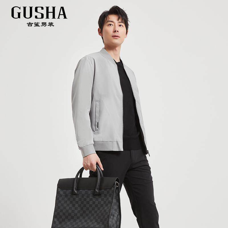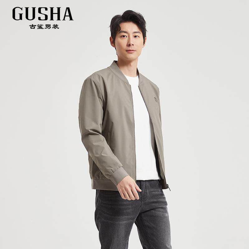 古鲨卡其色高端夹克男简约商务休闲多色棒球领外套2026春装新款