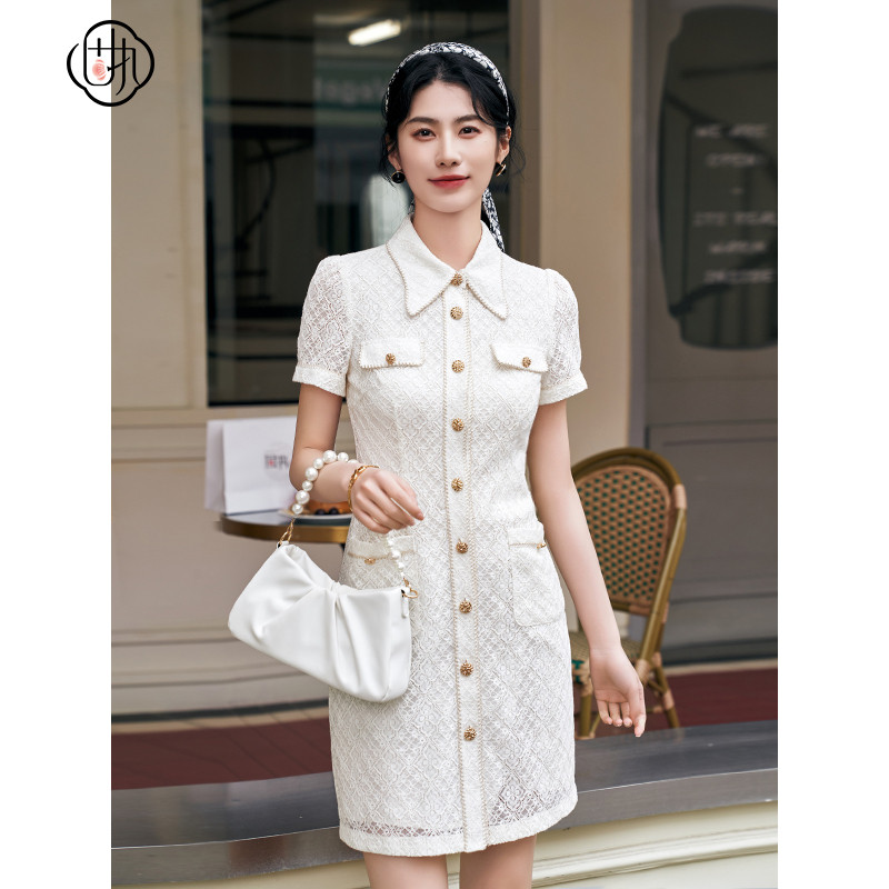 311线报网描述:法式复古小香风气质 蕾丝翻领短款连衣裙