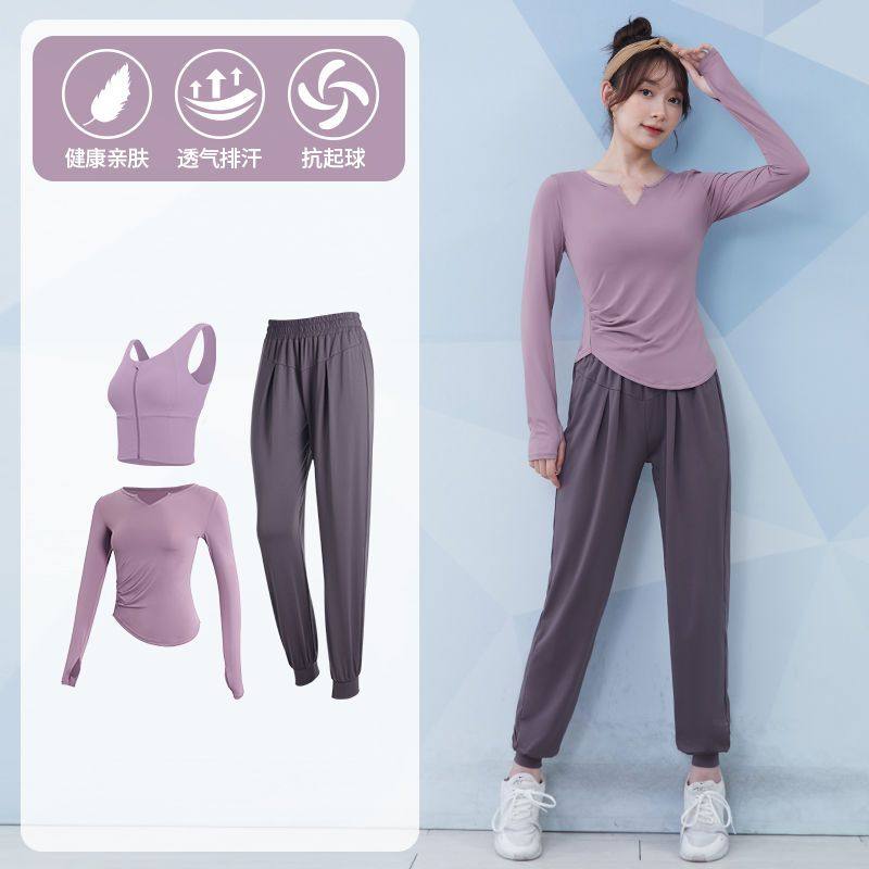 大码秋冬瑜伽服女长袖胖mm跑步运动上衣速干健身套装普拉提200斤