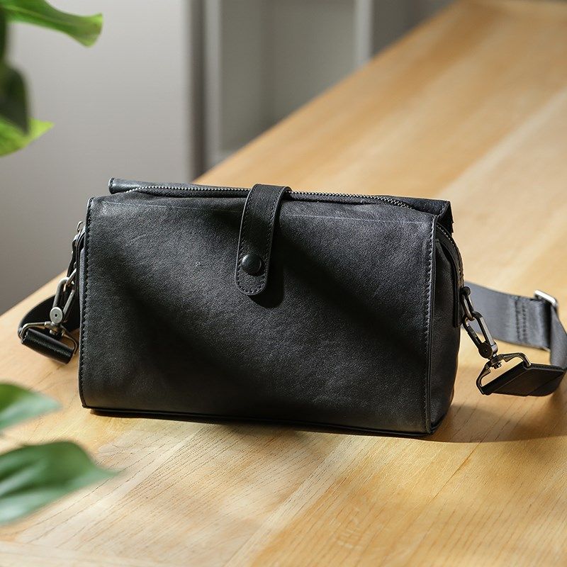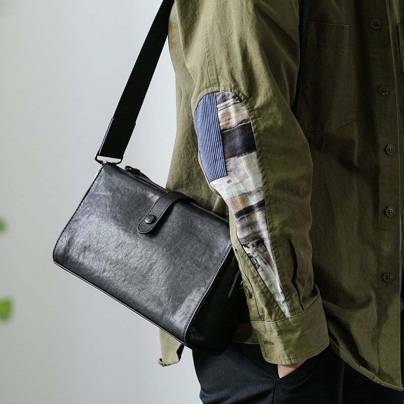 植鞣牛皮男士斜挎包真皮时尚小众设计单肩包小挎包多功能手拿包潮