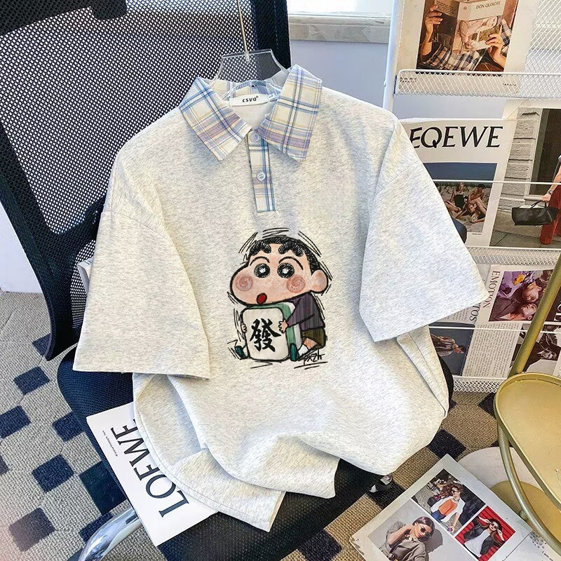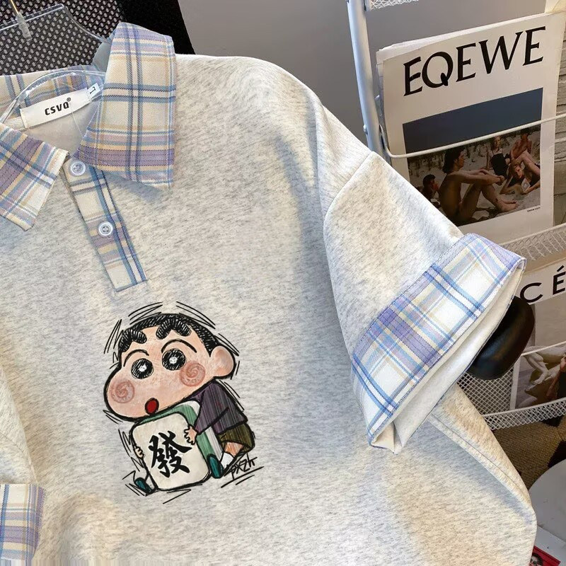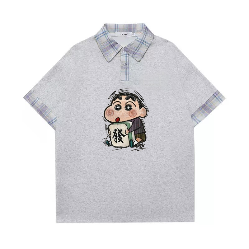 假两件大码短袖T恤少女夏装大码宽松初中高中学生POLO衫可爱上衣