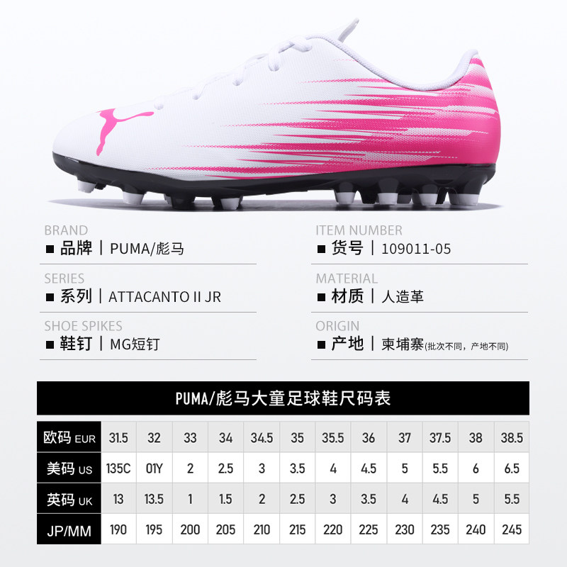 PUMA儿童足球鞋男童 正品新款彪马MG短钉小学生青少年女孩运动鞋