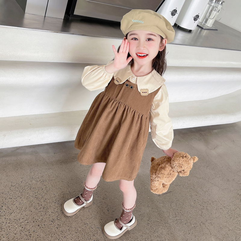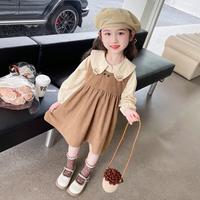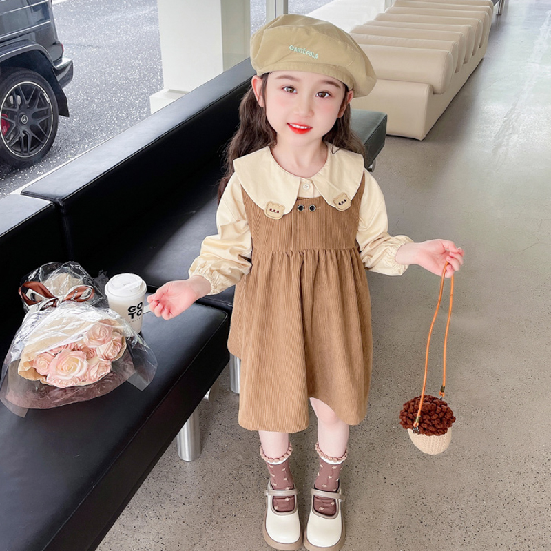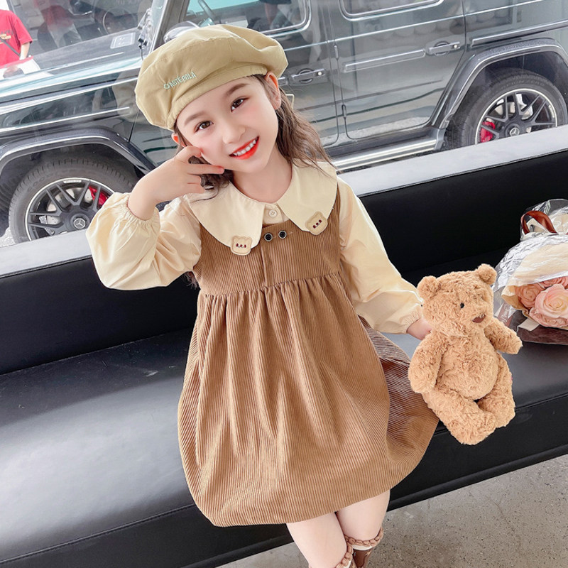 女童套装春秋款2026新款春季时髦儿童洋气熊仔宝宝连衣裙春装裙子