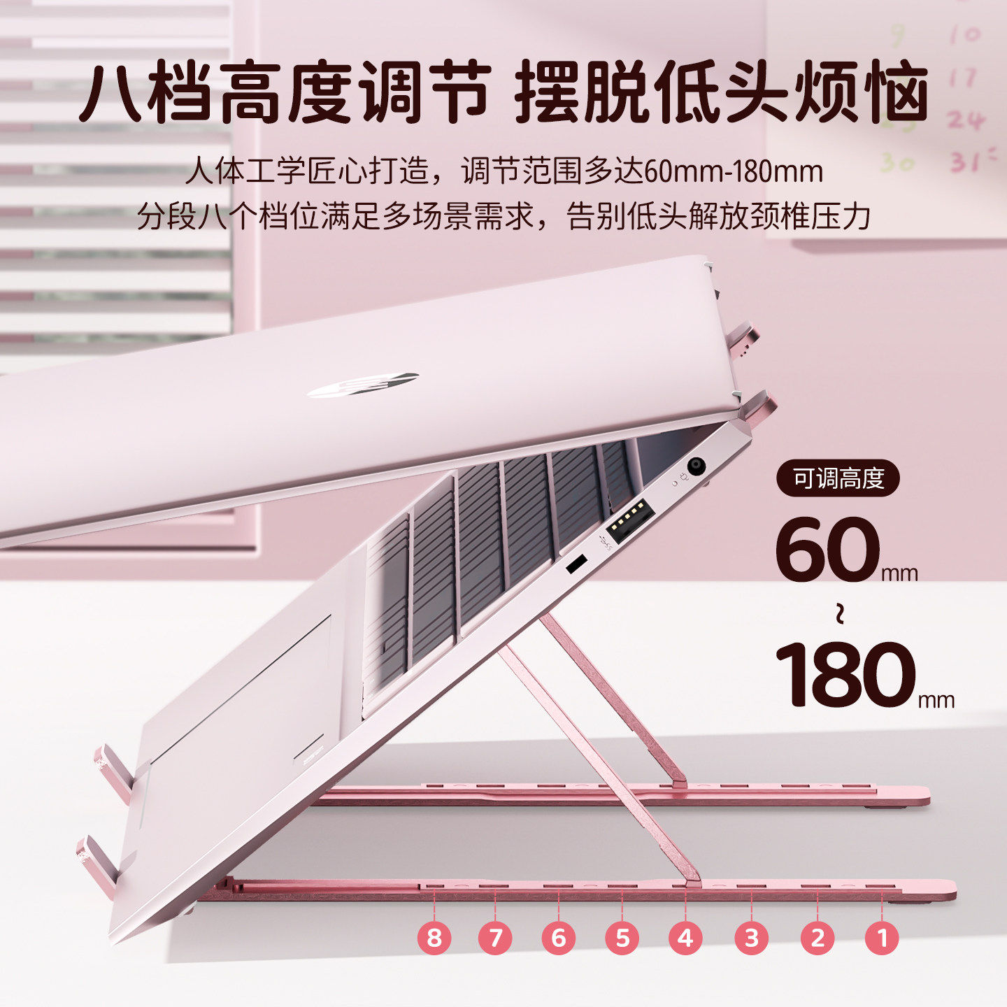 惠普品牌笔记本电脑支架女生可爱折叠便携托架铝合金底座硅胶防滑桌面增高散热华为苹果笔记本通用散热架办公