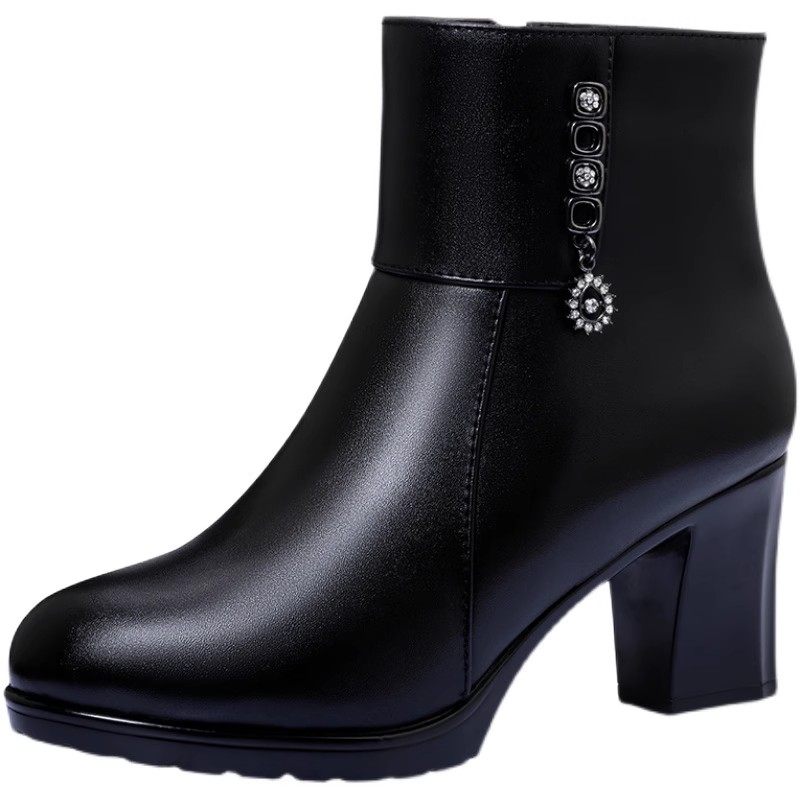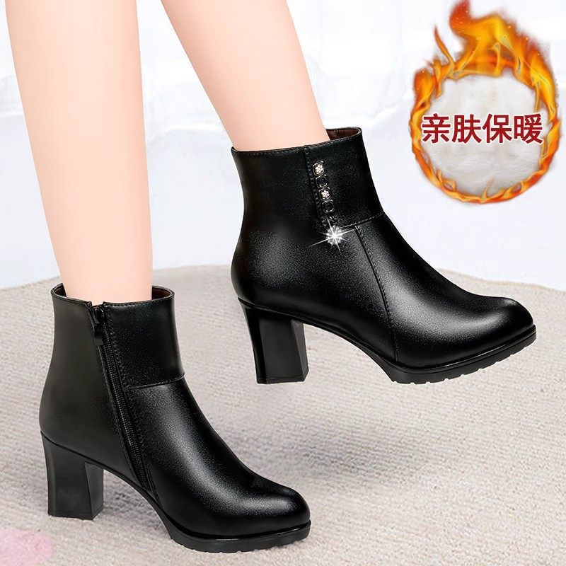 品牌特价妈妈短靴女士单靴粗跟马丁靴2023春秋皮鞋真皮百搭高跟鞋