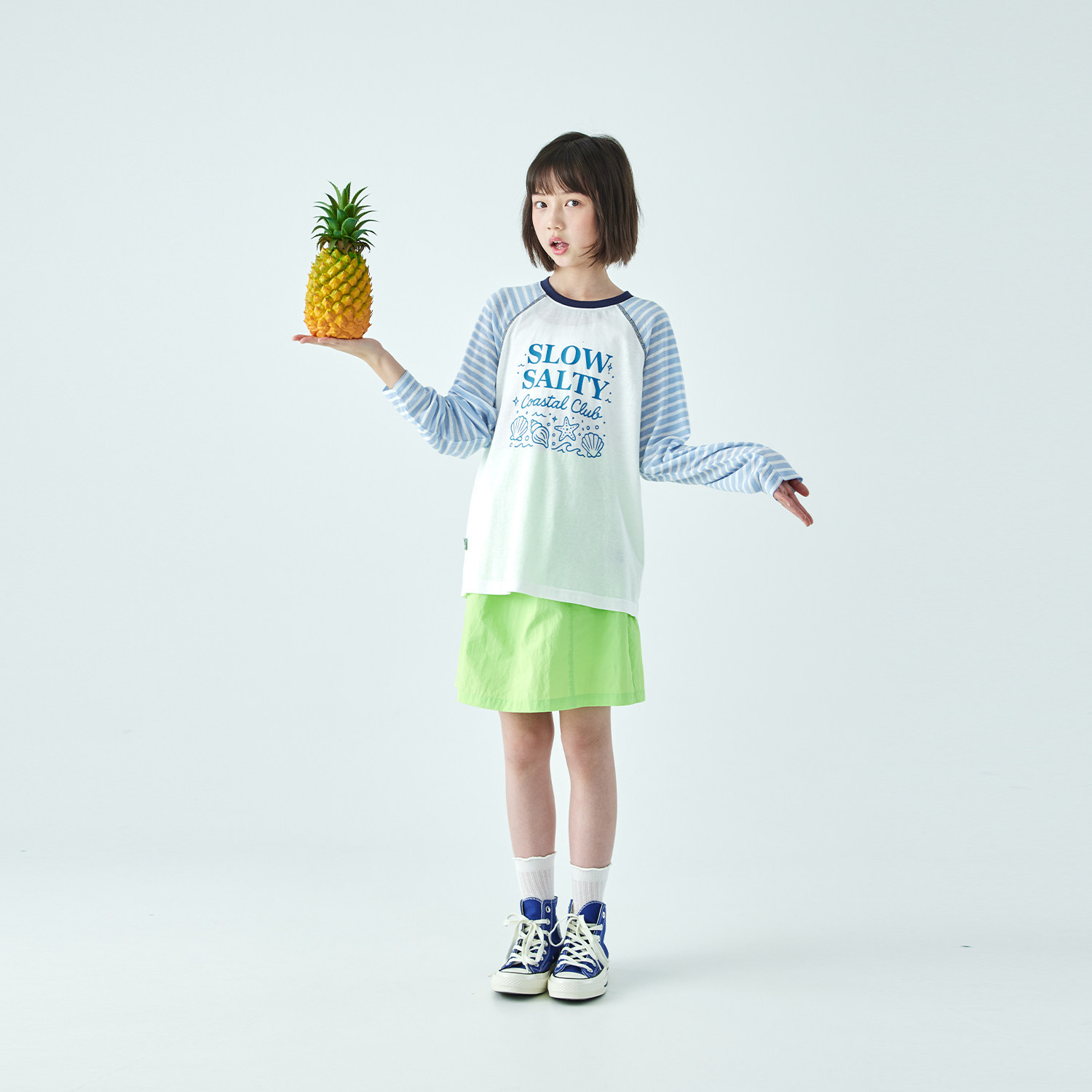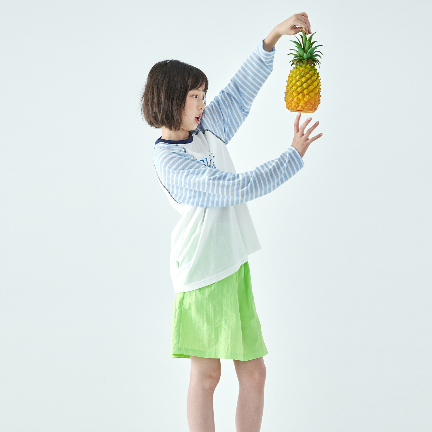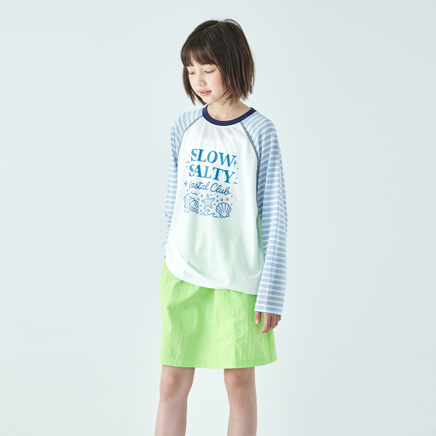 棵初2026年夏季新款亲子中大女童插肩条纹长袖T恤轻薄宽松上衣