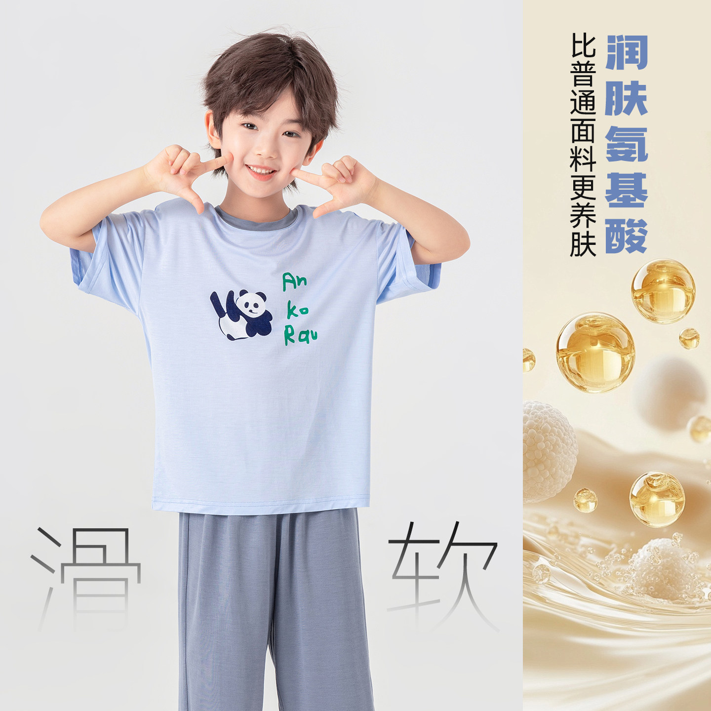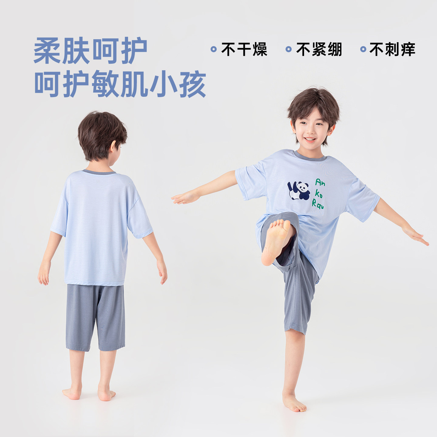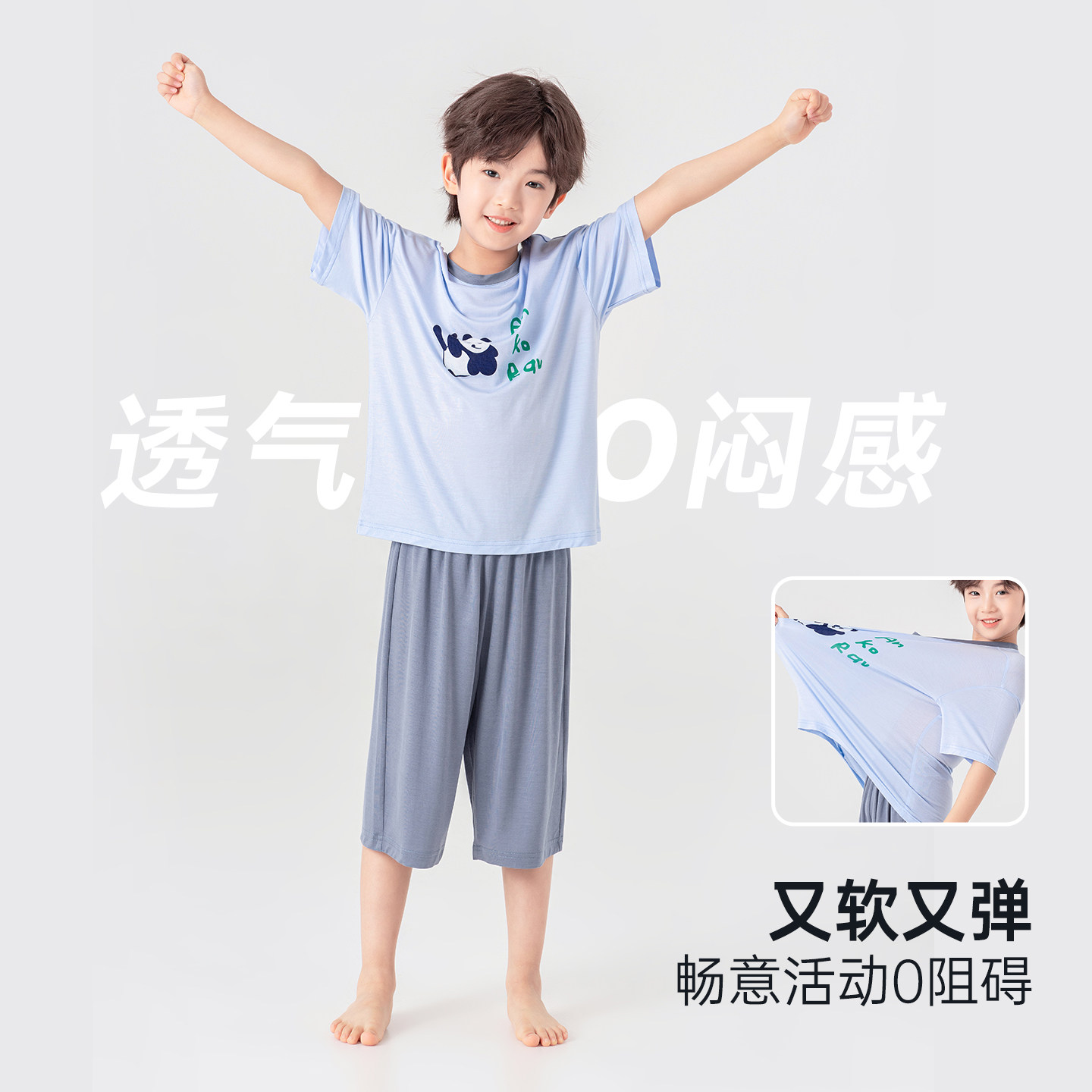 多多家男童家居服套装抗起球2026新款夏季夏装儿童男孩短袖短裤潮