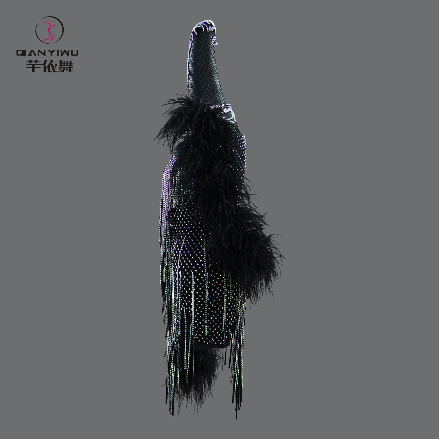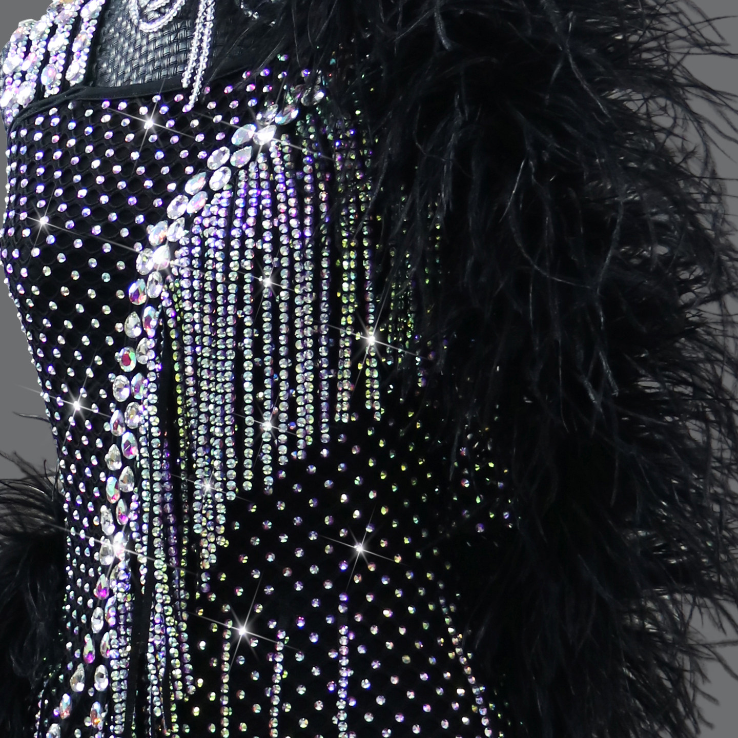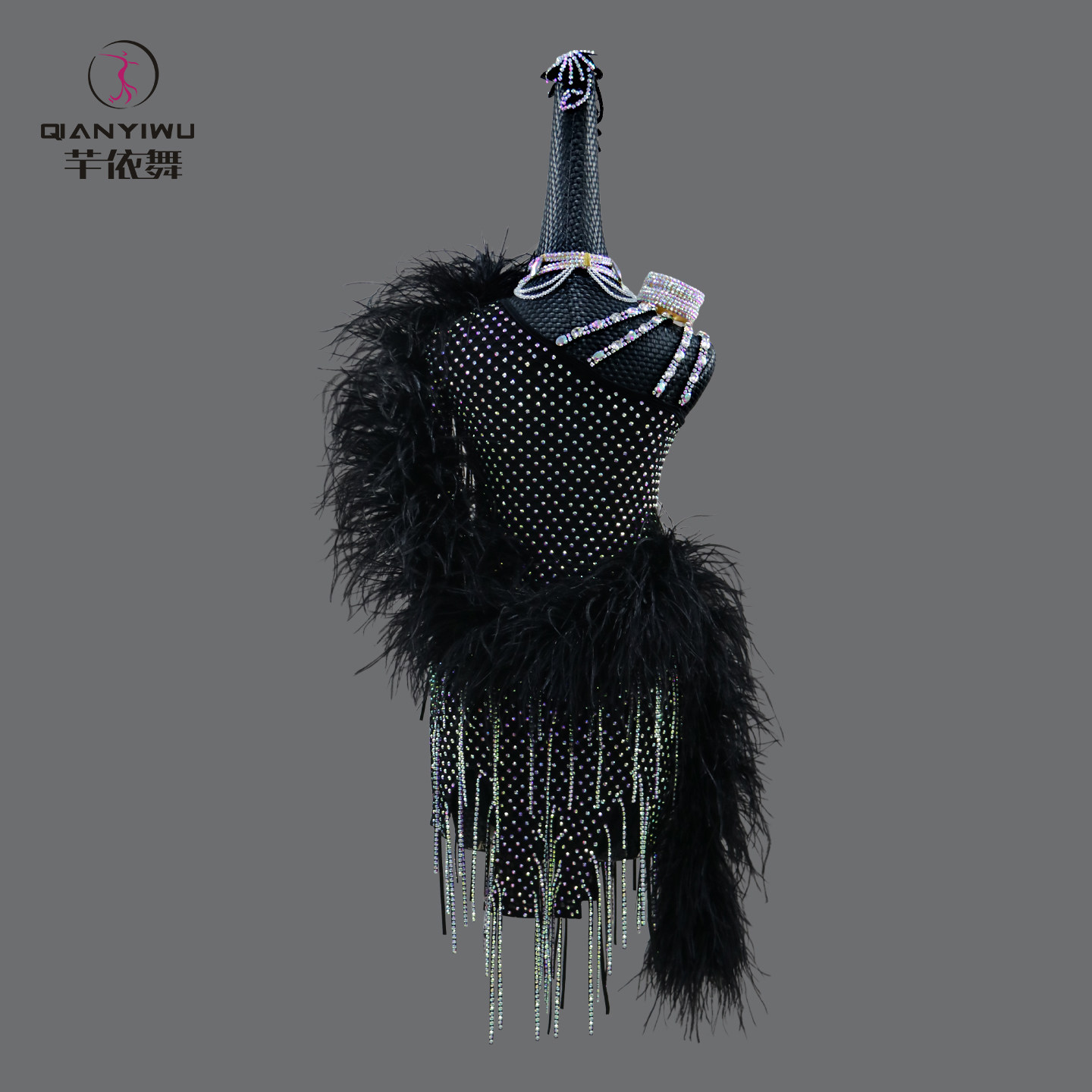 2026新款黑色羽毛拉丁舞比赛花服专业黑池舞蹈演出服加钻定制服装