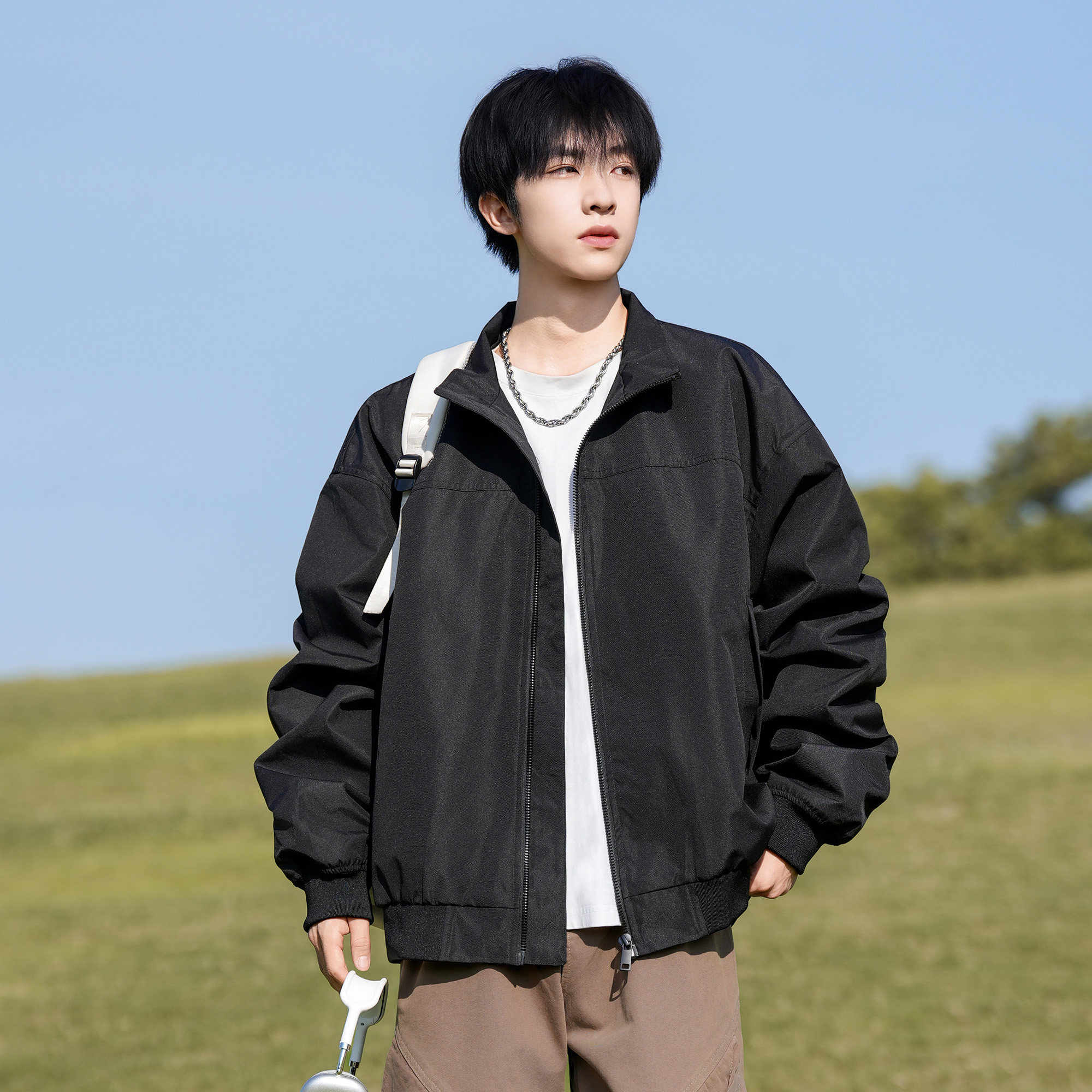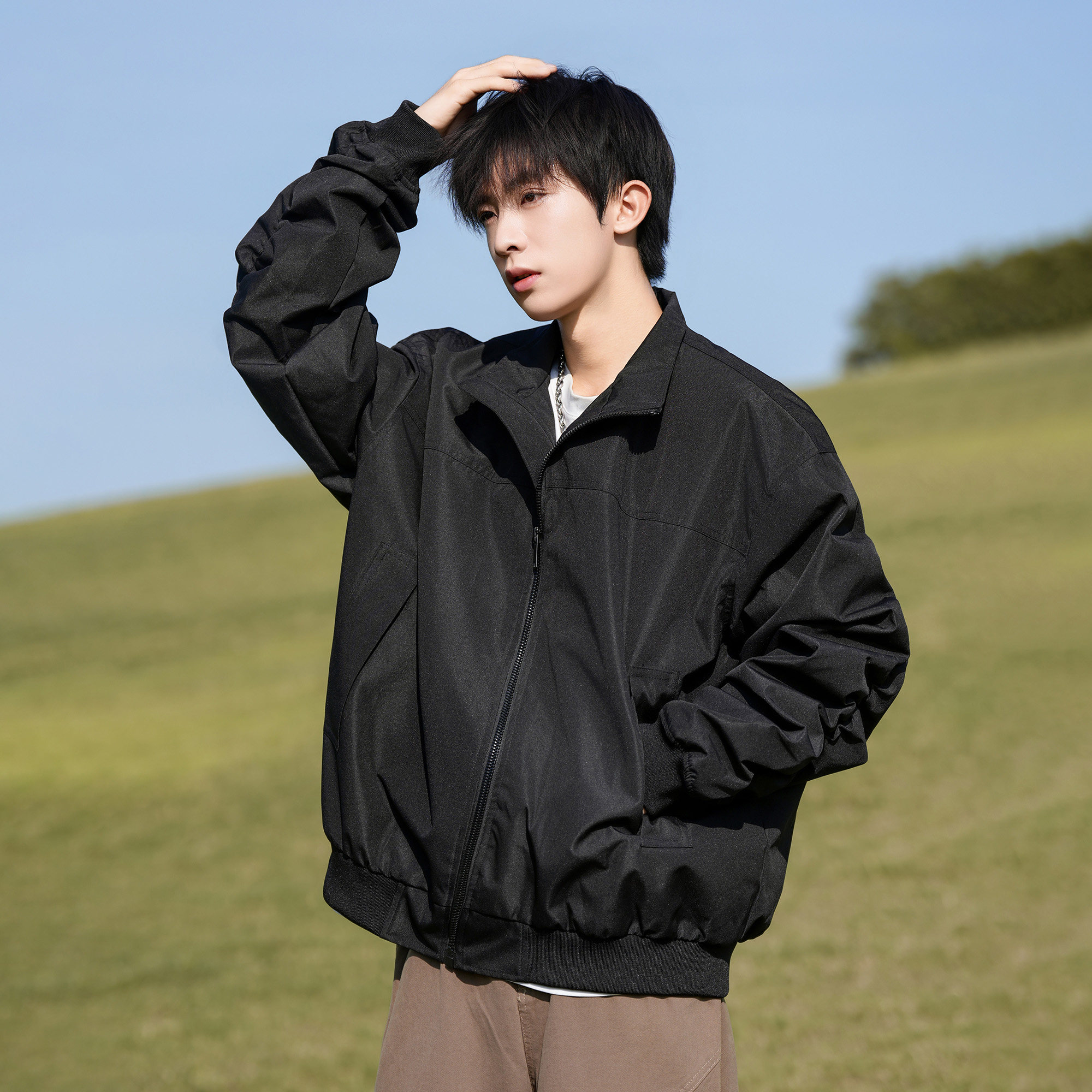 胖胖哥美式立领教练飞行夹克男款春季潮流工装立领大码宽松外套