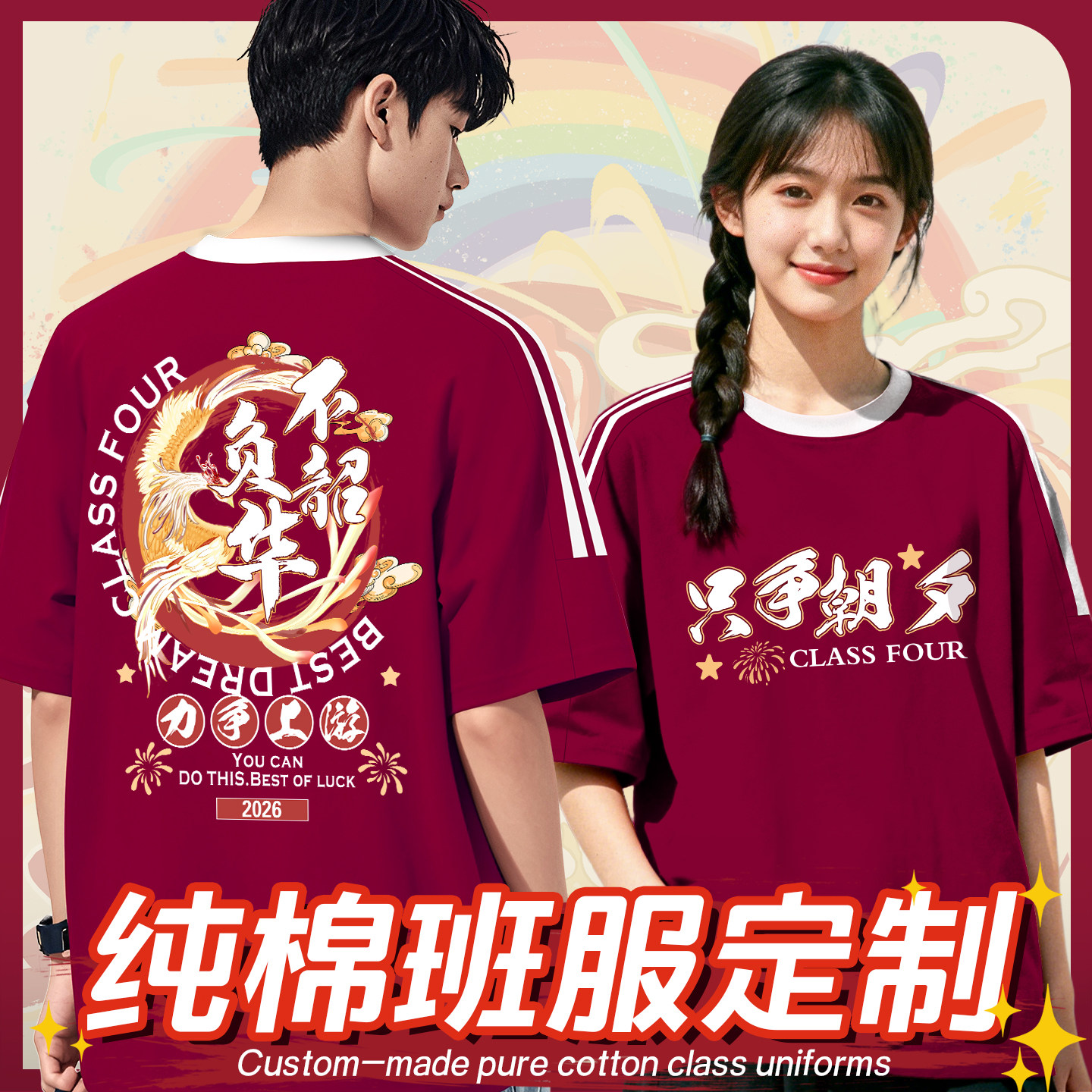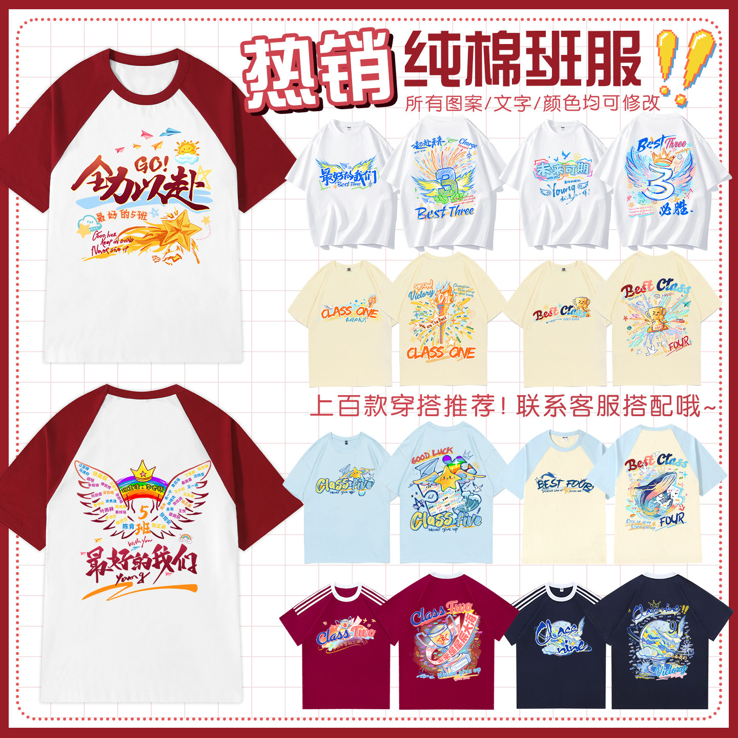 运动会班服定制t恤纯棉短袖初中生高中生校运会体育节学生衣服装