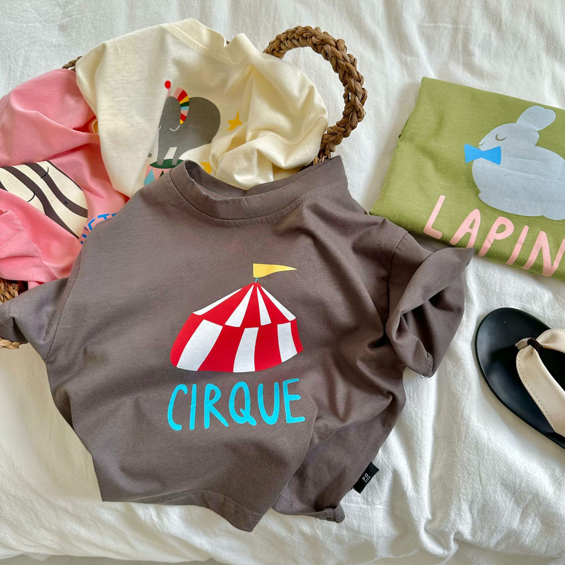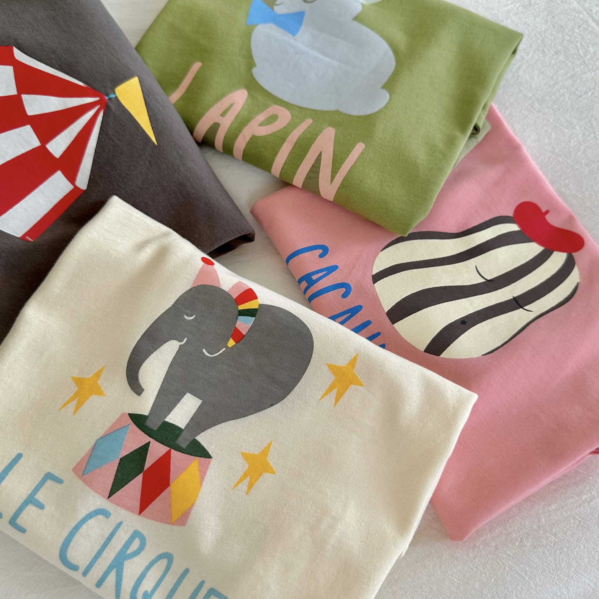 纯棉女童短袖t恤2024新款洋气韩版卡通印花男童夏装儿童休闲上衣