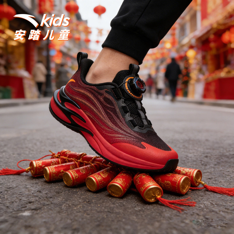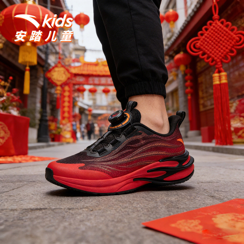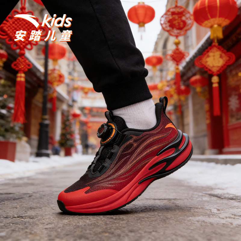 安踏儿童运动鞋男童鞋赤焰跑鞋2026春季新年款鞋子跑鞋纽扣童鞋