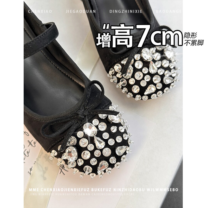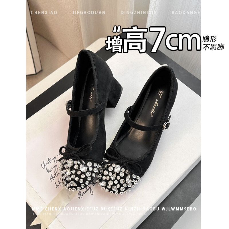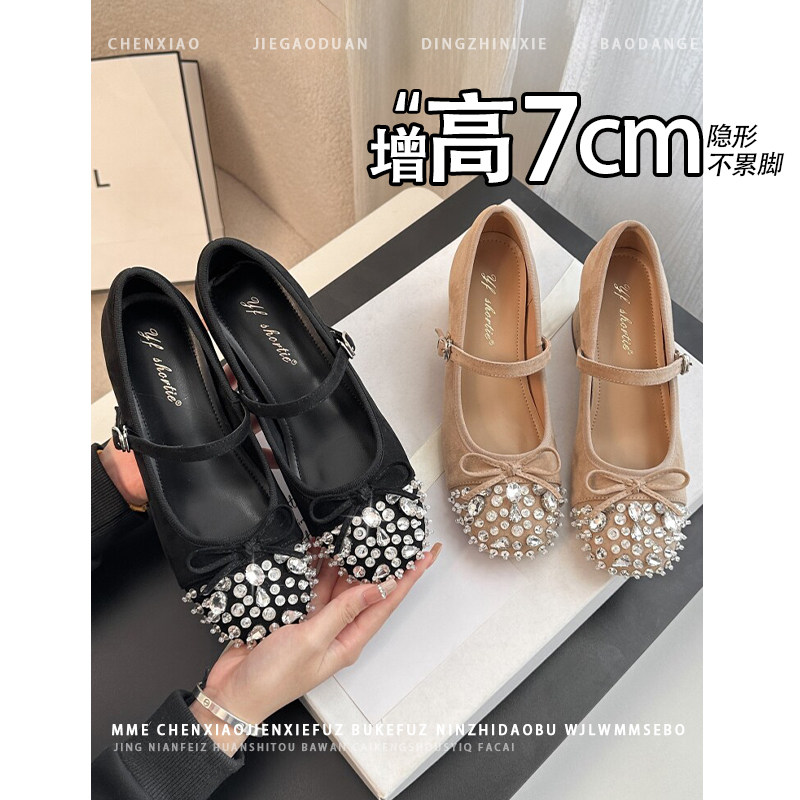 不累脚!内增高7CM水钻蝴蝶结玛丽珍单鞋2026春新款一字扣高跟鞋女