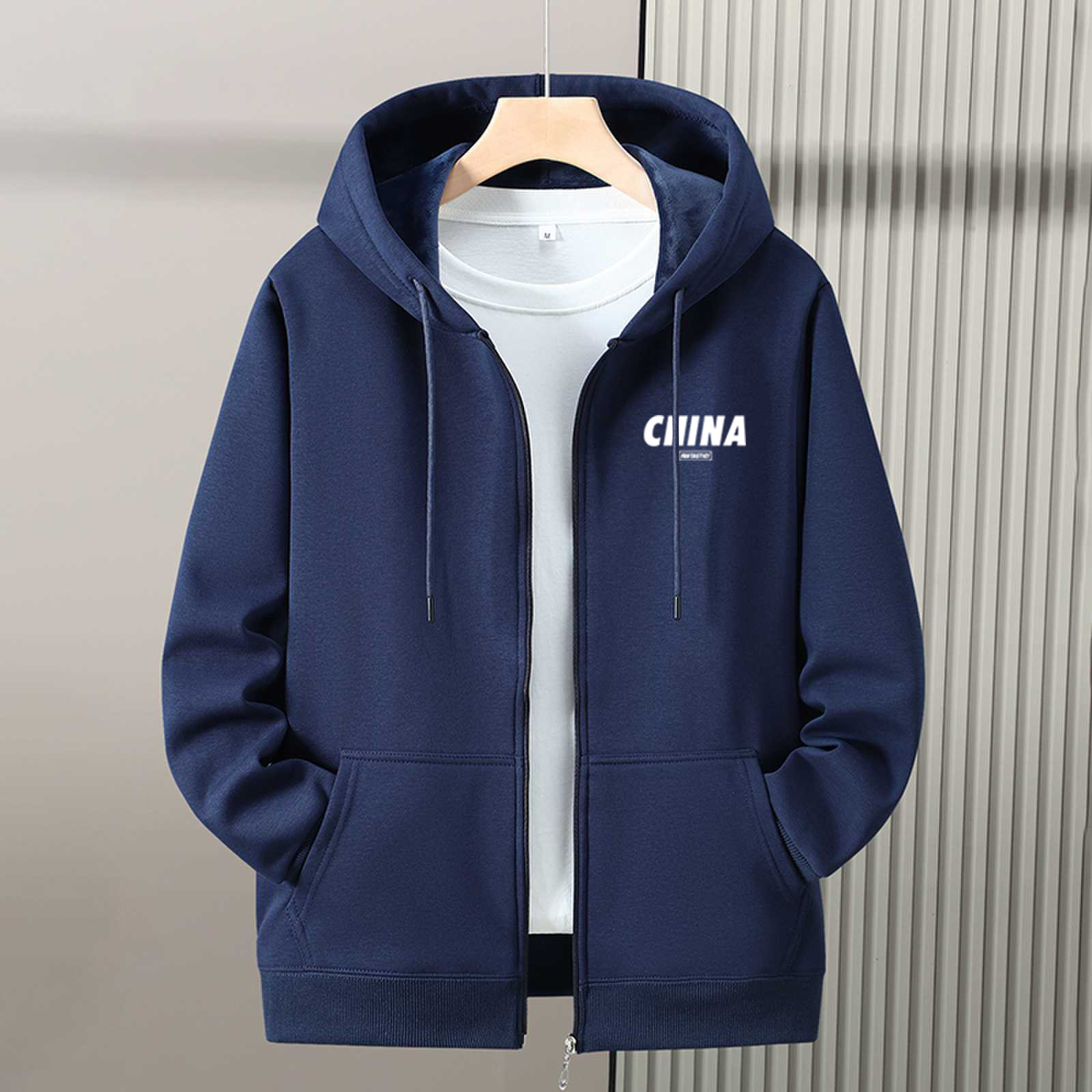 卫衣男士连帽开衫外套秋冬款青少年拉链加绒加厚帽衫外衣潮牌男装