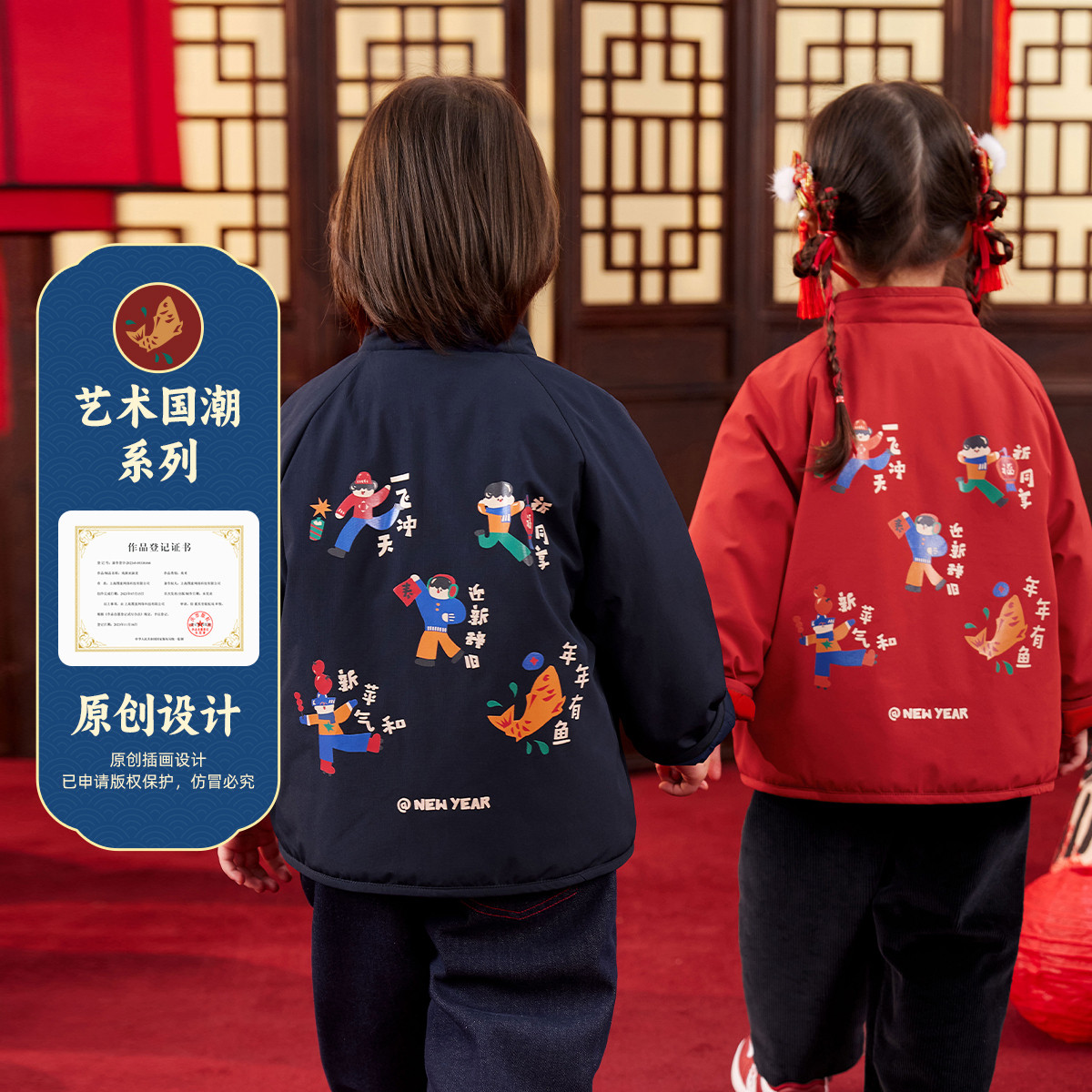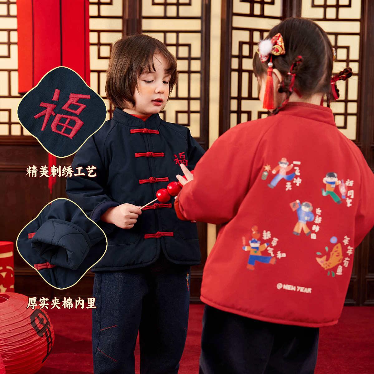 [加厚夹棉]儿童唐装冬装宝宝外套红色男童国风上装女童冬款外衣