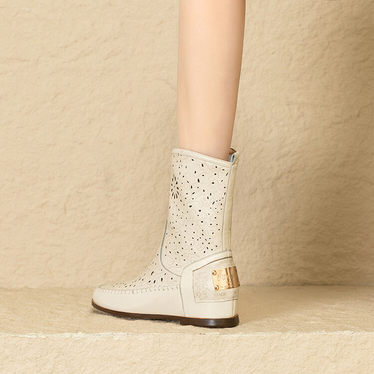 镂空凉靴女真皮2026夏新款透气网靴内增高短靴低跟春秋单靴百搭鞋
