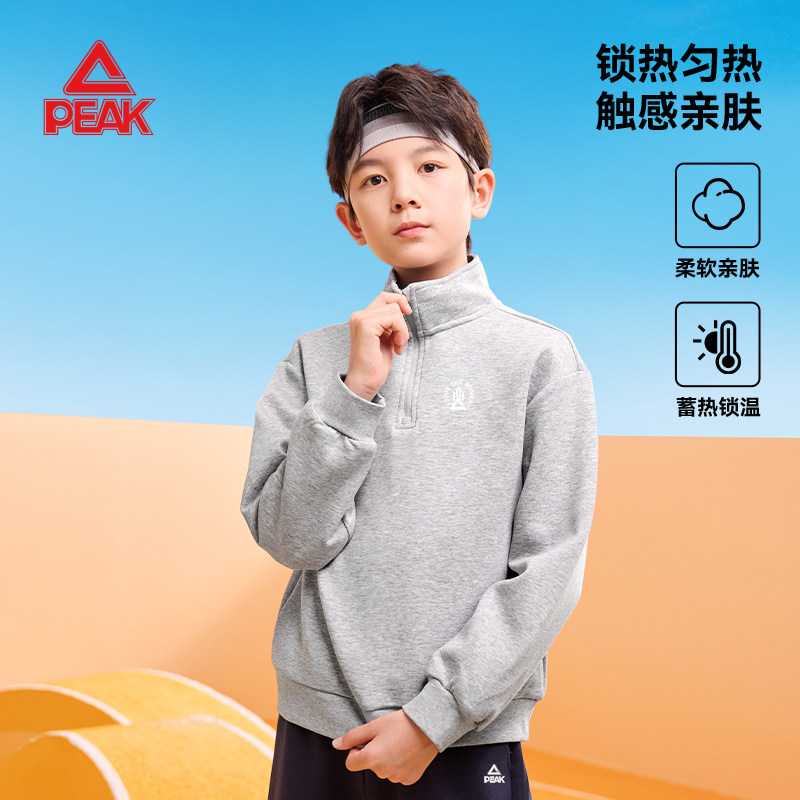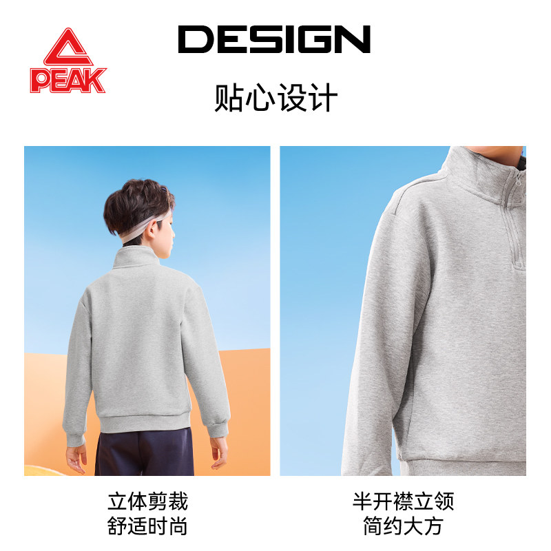 匹克男童加绒运动套装儿童红色一体绒卫衣裤子两件套青少年拜年服