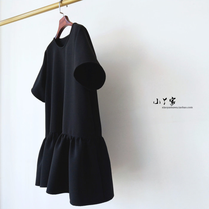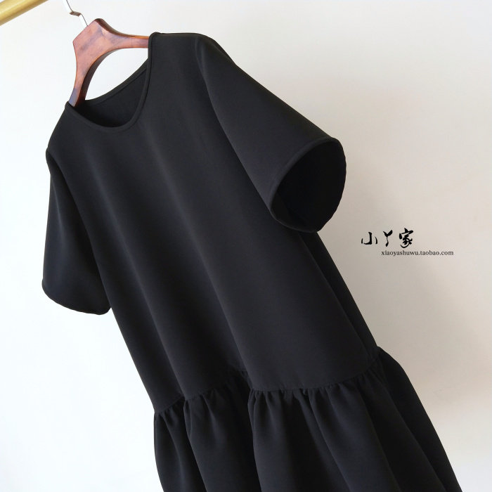 黑色夏季新款女夏宽松气质显瘦遮肉短款圆领短袖可爱娃娃款连衣裙