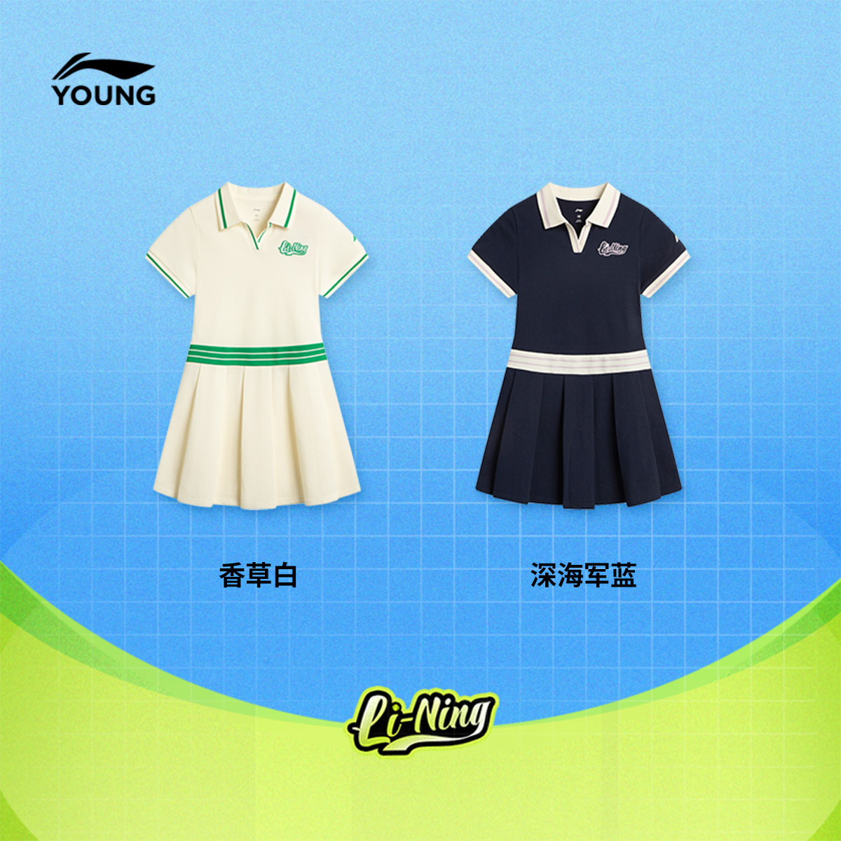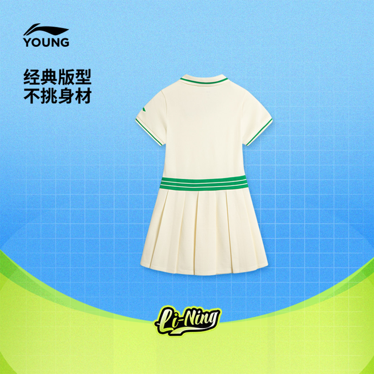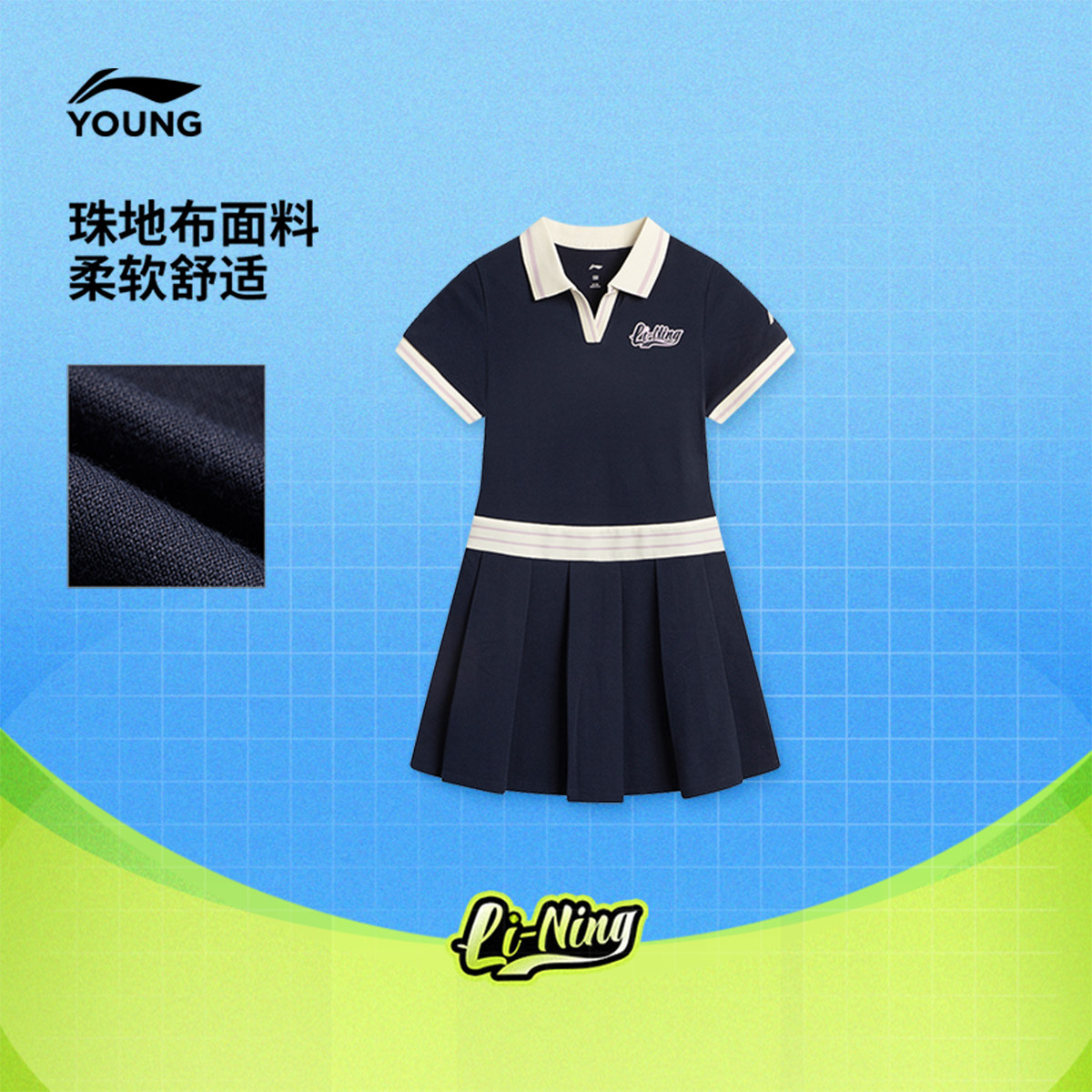 李宁儿童连衣裙女大童夏装新款网球系列翻领夏季针织童装