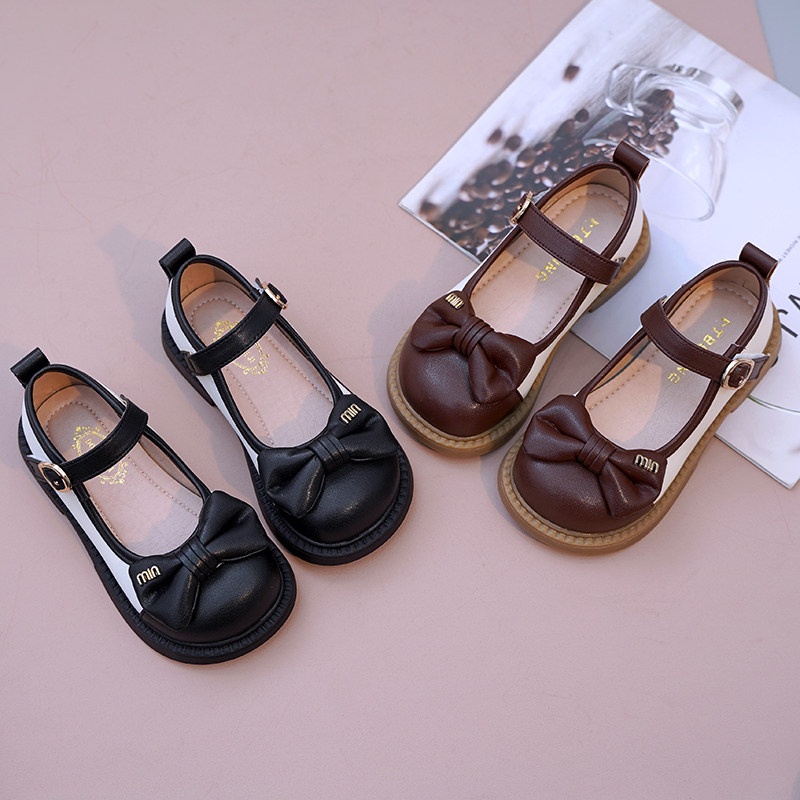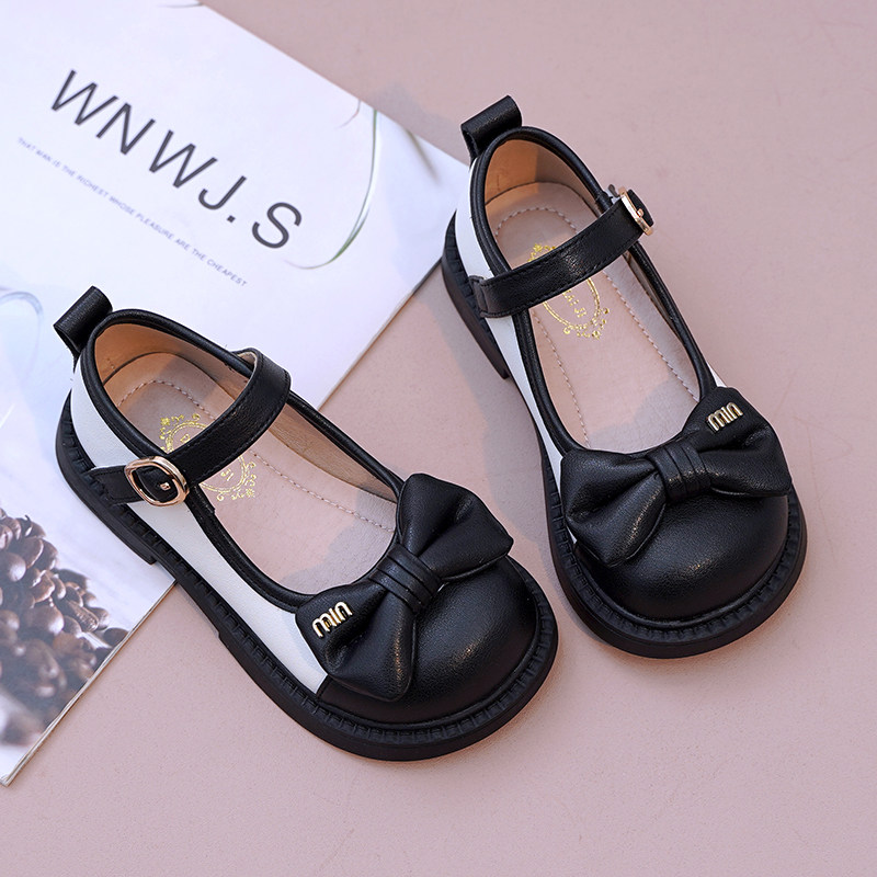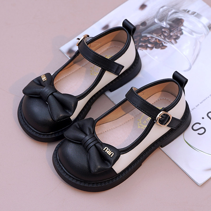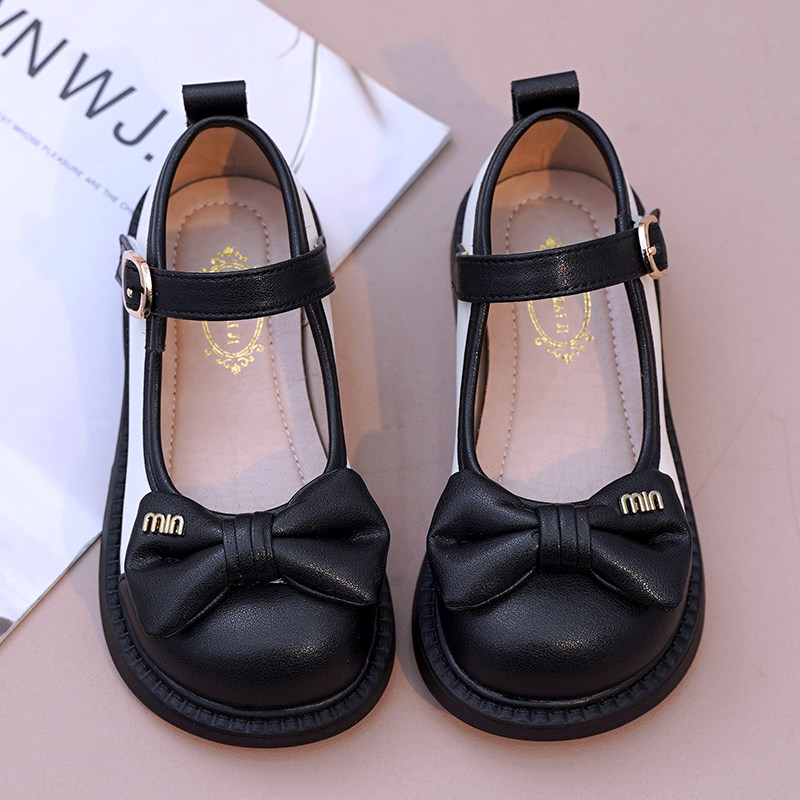 女童皮鞋黑色公主鞋真皮软底蝴蝶结小女孩洋气小皮鞋2025春季新款