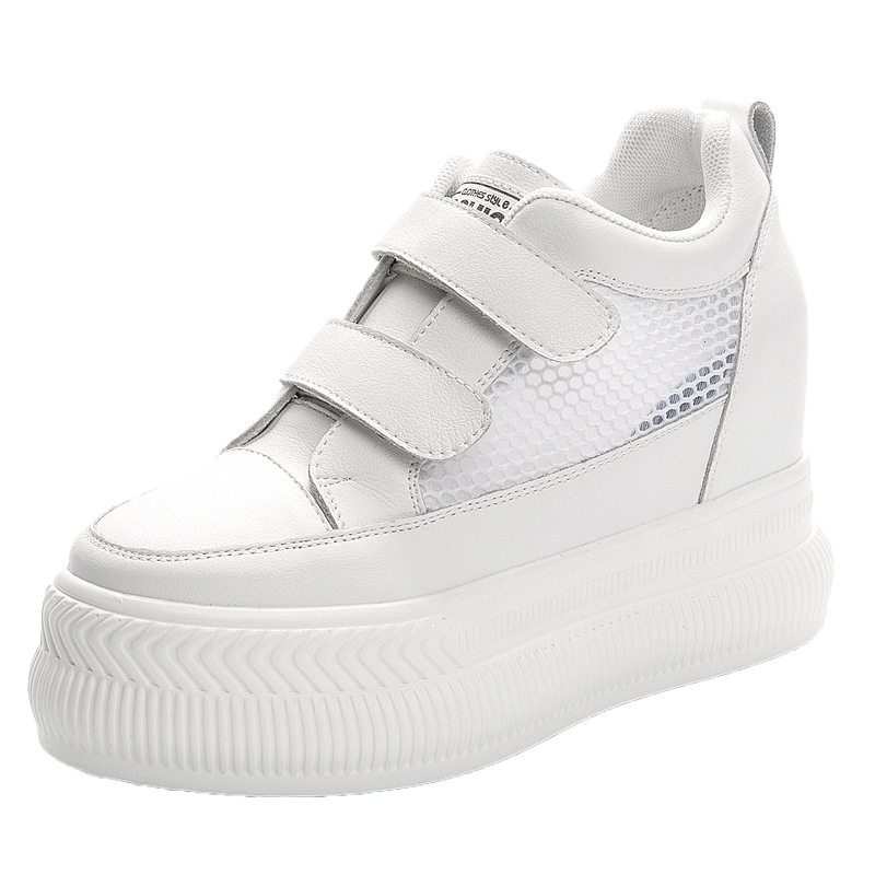 夏天小白鞋女2026夏季新款百搭透气网鞋魔术贴小个子增高10cm单鞋
